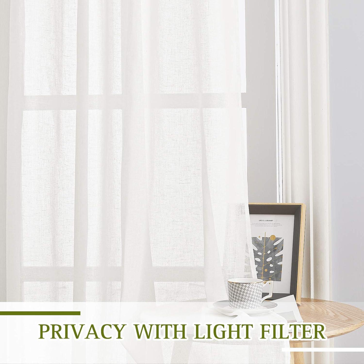 NICETOWN White Linen Curtains 84 inch Length, Tab Top Soft Semi Sheer Flax Window Treatments Privacy with Light Filtering Vertical Drapes for Bedroom/Living Room, W52 x L84, 2 Panels(Natural)