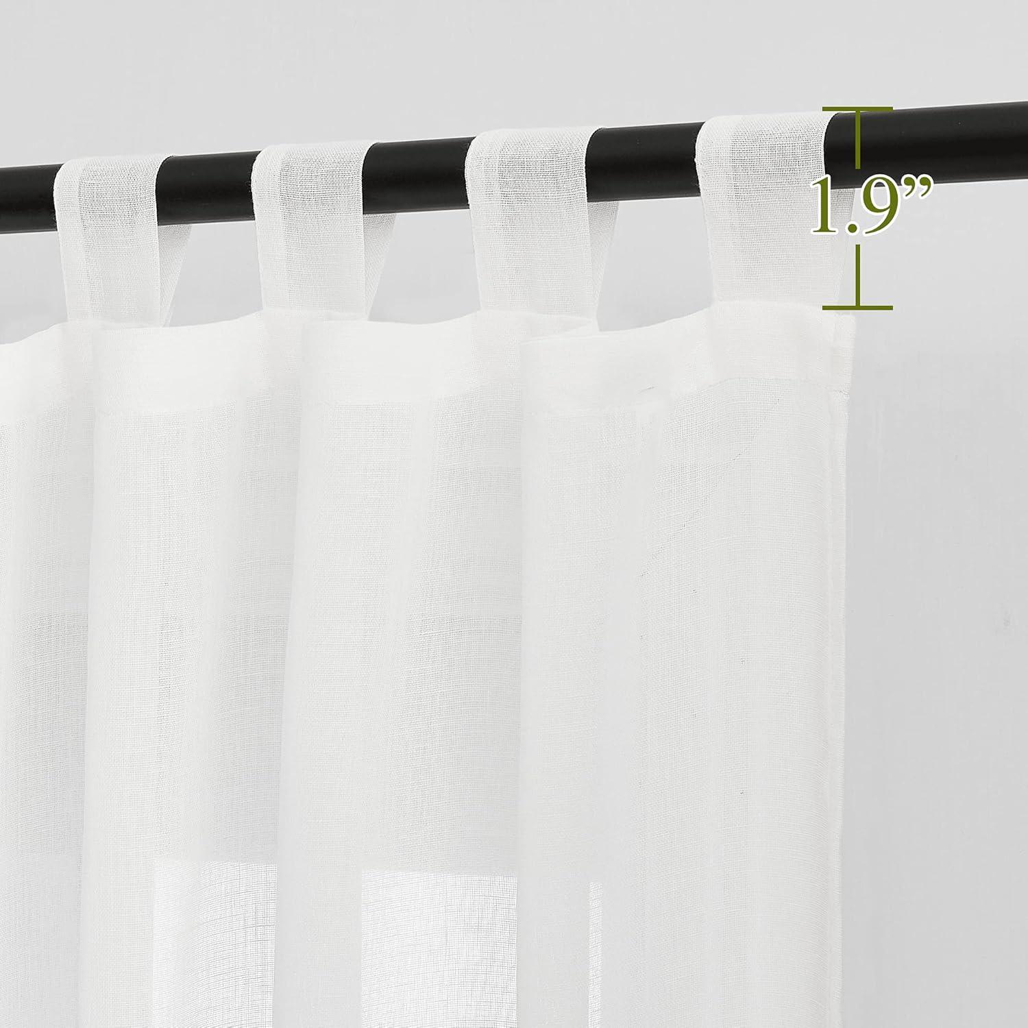 NICETOWN White Linen Curtains 84 inch Length, Tab Top Soft Semi Sheer Flax Window Treatments Privacy with Light Filtering Vertical Drapes for Bedroom/Living Room, W52 x L84, 2 Panels(Sea Mist)