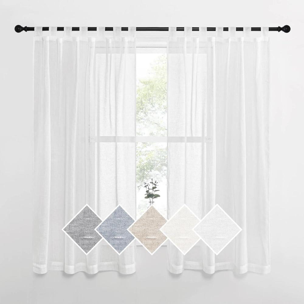 imageNICETOWN White Linen Curtains 84 inch Length Tab Top Soft Semi Sheer Flax Window Treatments Privacy with Light Filtering Vertical Drapes for BedroomLiving Room W52 x L84 2 PanelsSea Mist