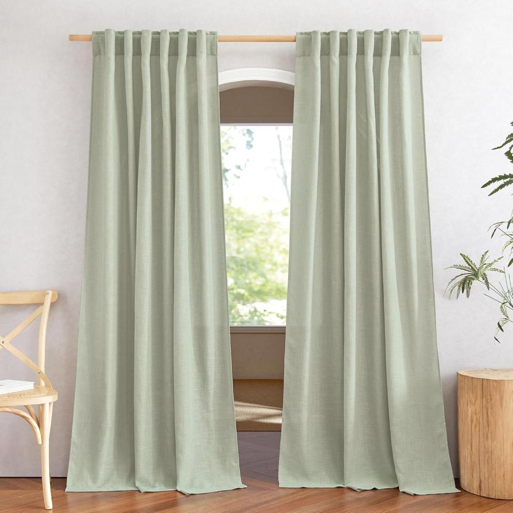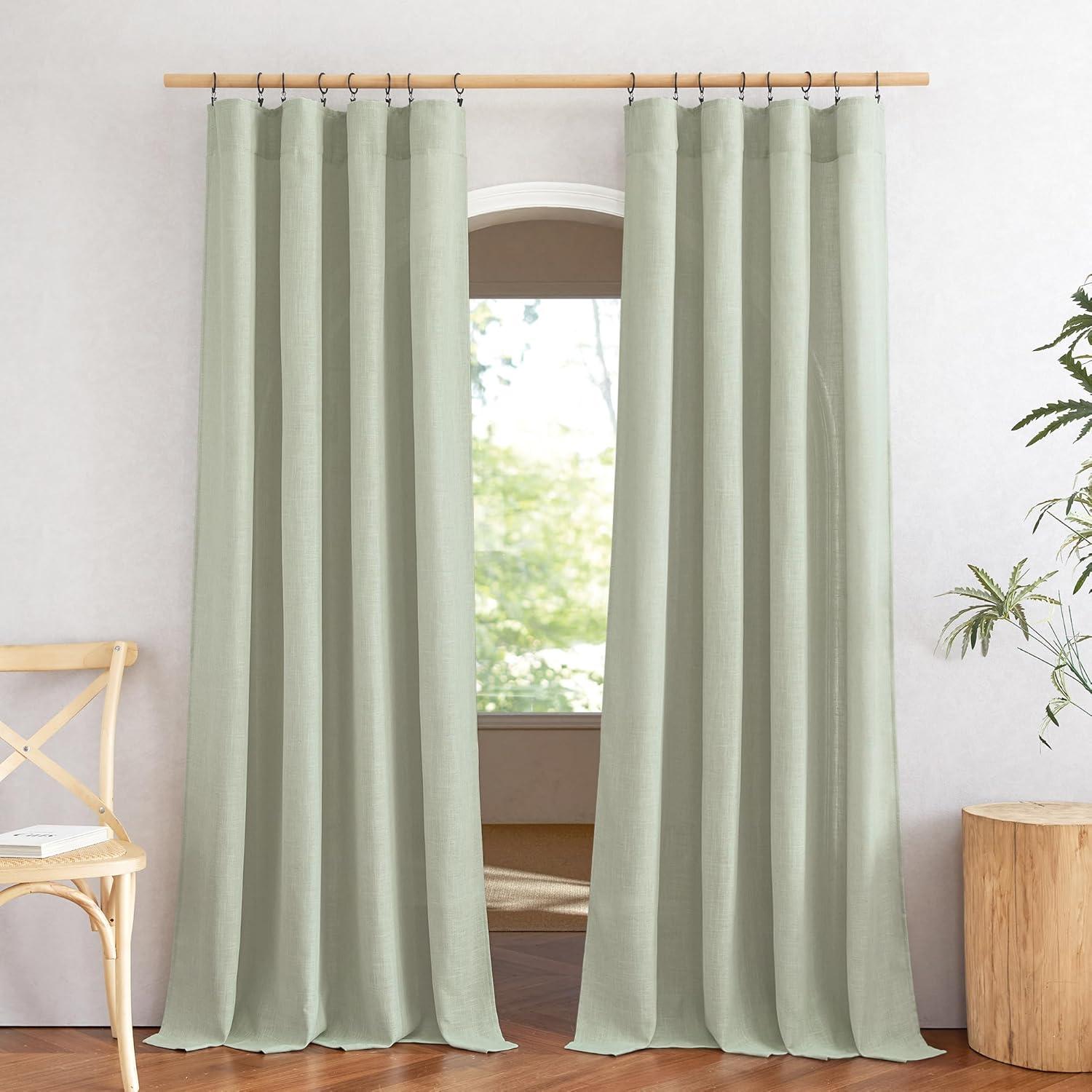 Get up to 50% off on NICETOWN White Linen Sheer Curtains and Drapes 84 inches Long, Rod Pocket & Back Tab semitransparent with Light Through Vertical Window Treatments for Sliding Glass Door & Living Room, 52"W, Set of 2(Linen Sage Green) styles during our spring sale event.