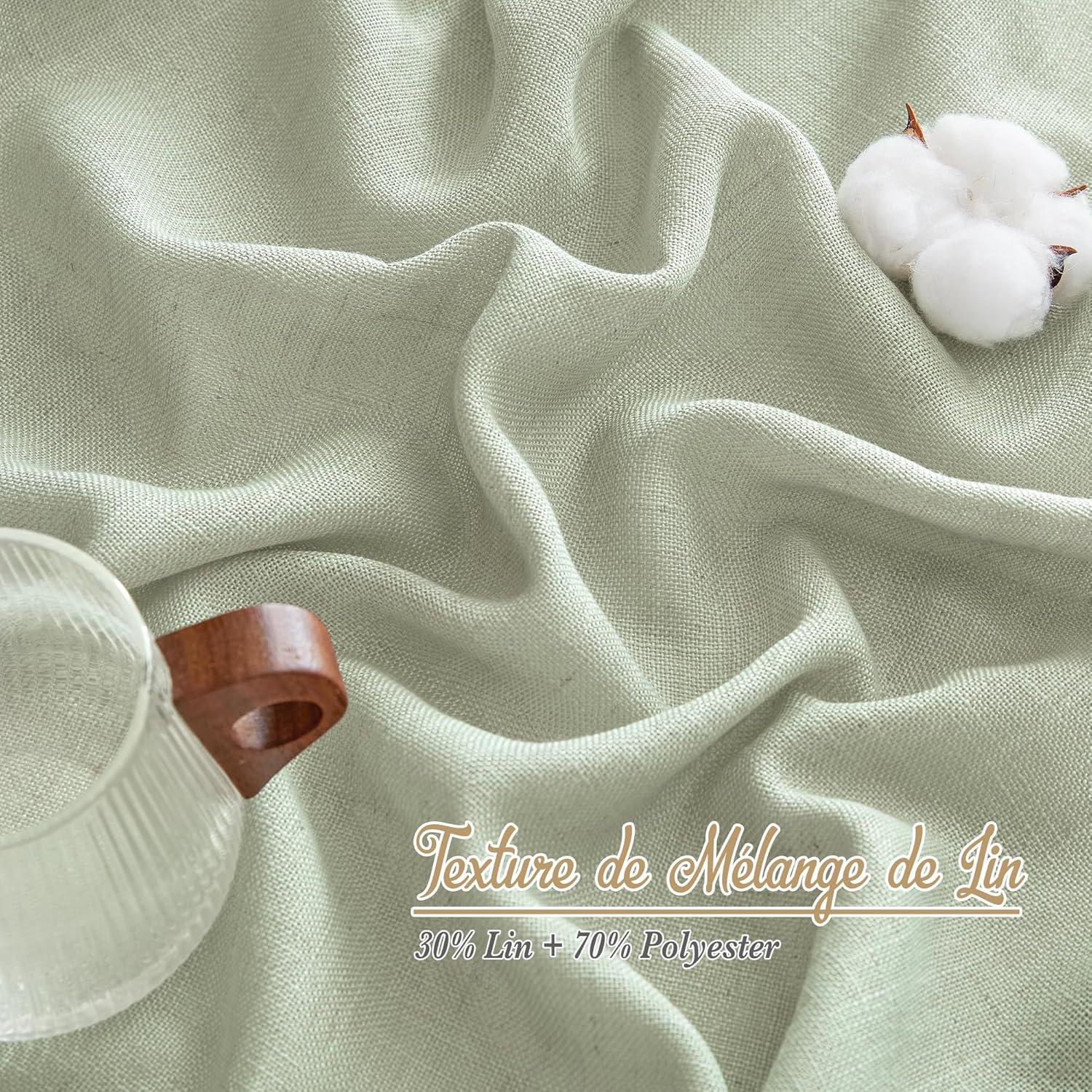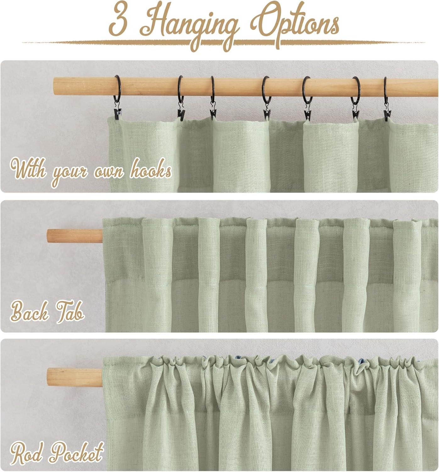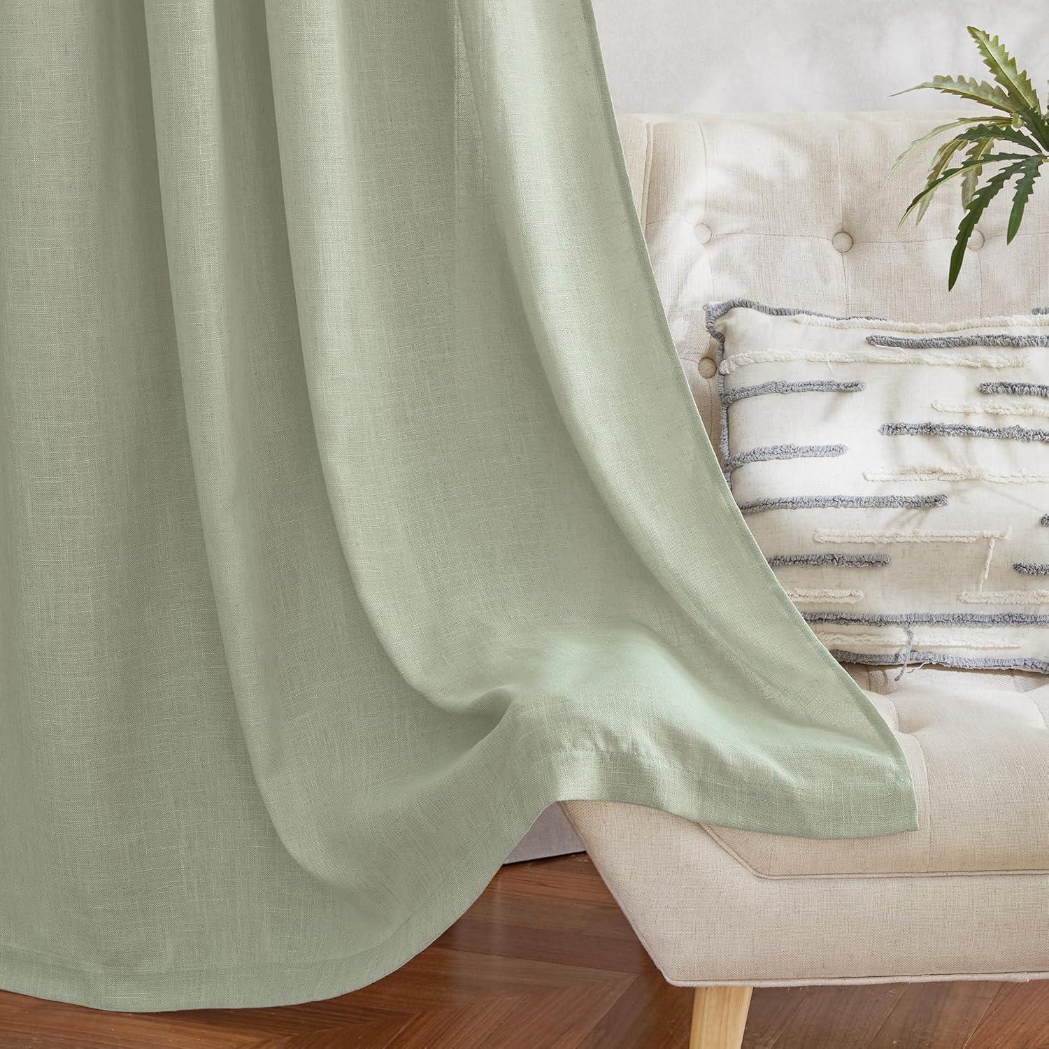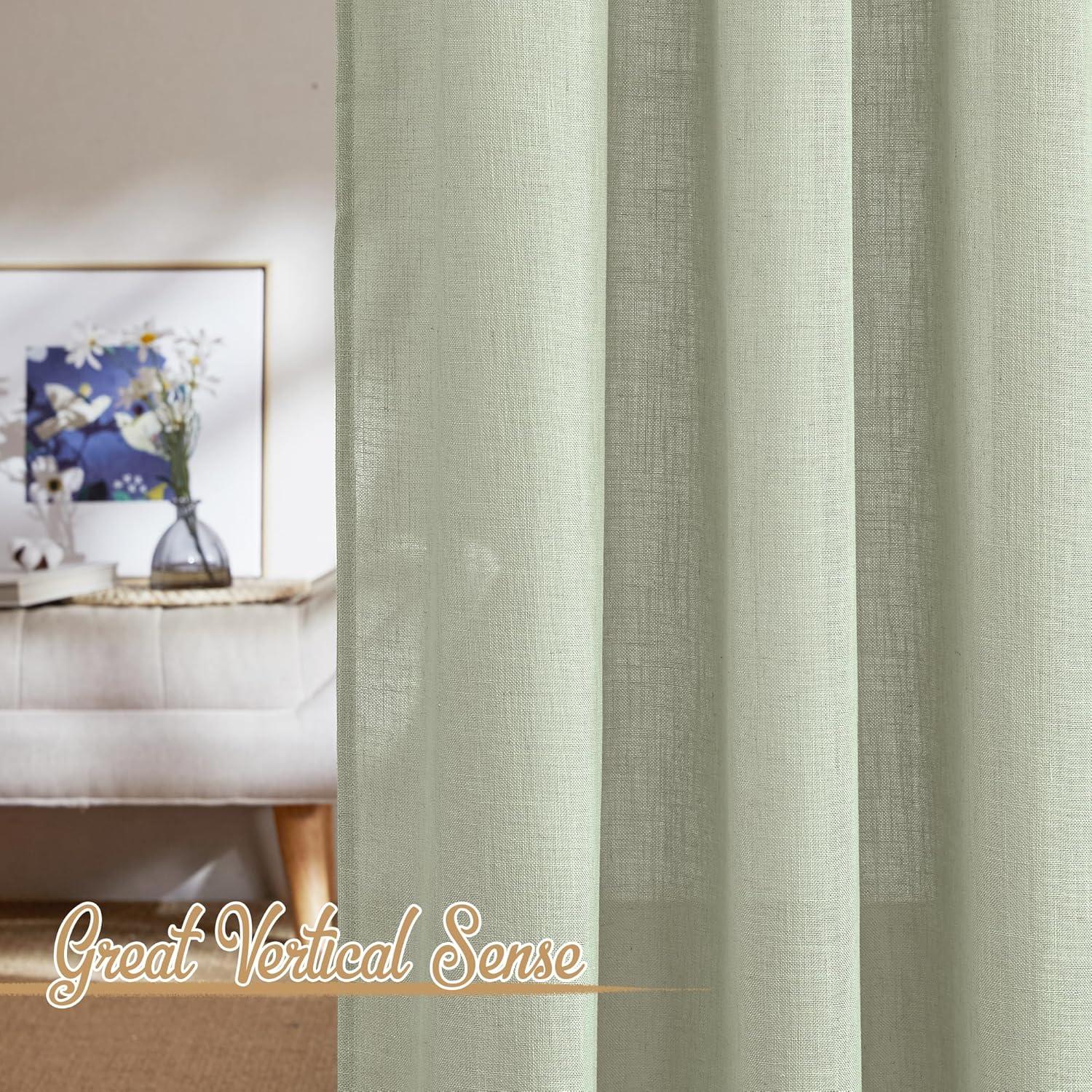 NICETOWN White Linen Sheer Curtains and Drapes 84 inches Long, Rod Pocket & Back Tab semitransparent with Light Through Vertical Window Treatments for Sliding Glass Door & Living Room, 52"W, Set of 2(Linen Sage Green)
