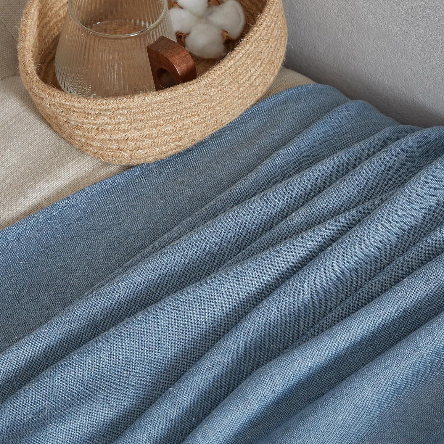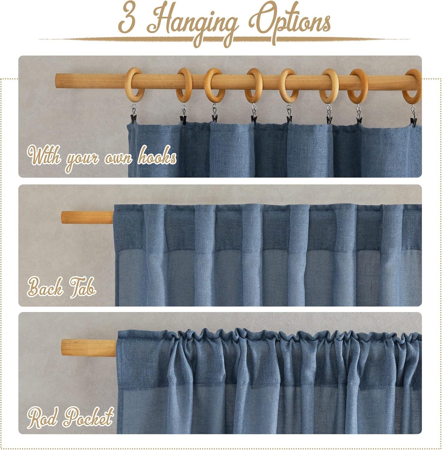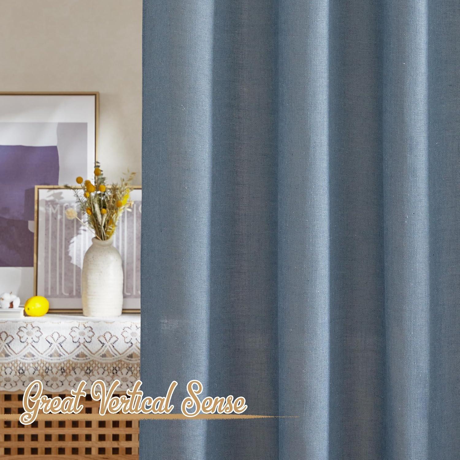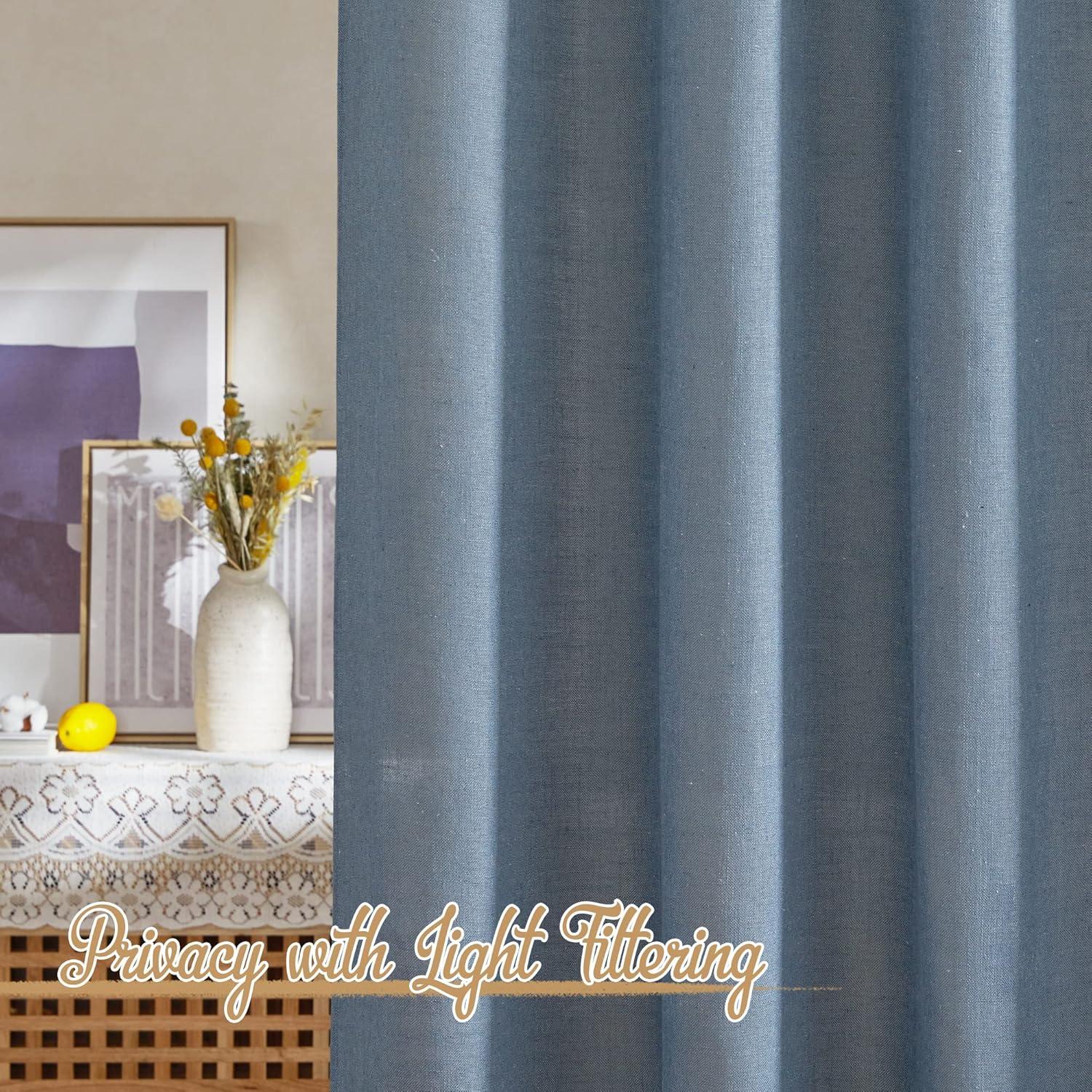 NICETOWN White Linen Sheer Curtains and Drapes 84 inches Long, Rod Pocket & Back Tab semitransparent with Light Through Vertical Window Treatments for Sliding Glass Door & Living Room, 52"W, Set of 2(Linen Stone Blue)