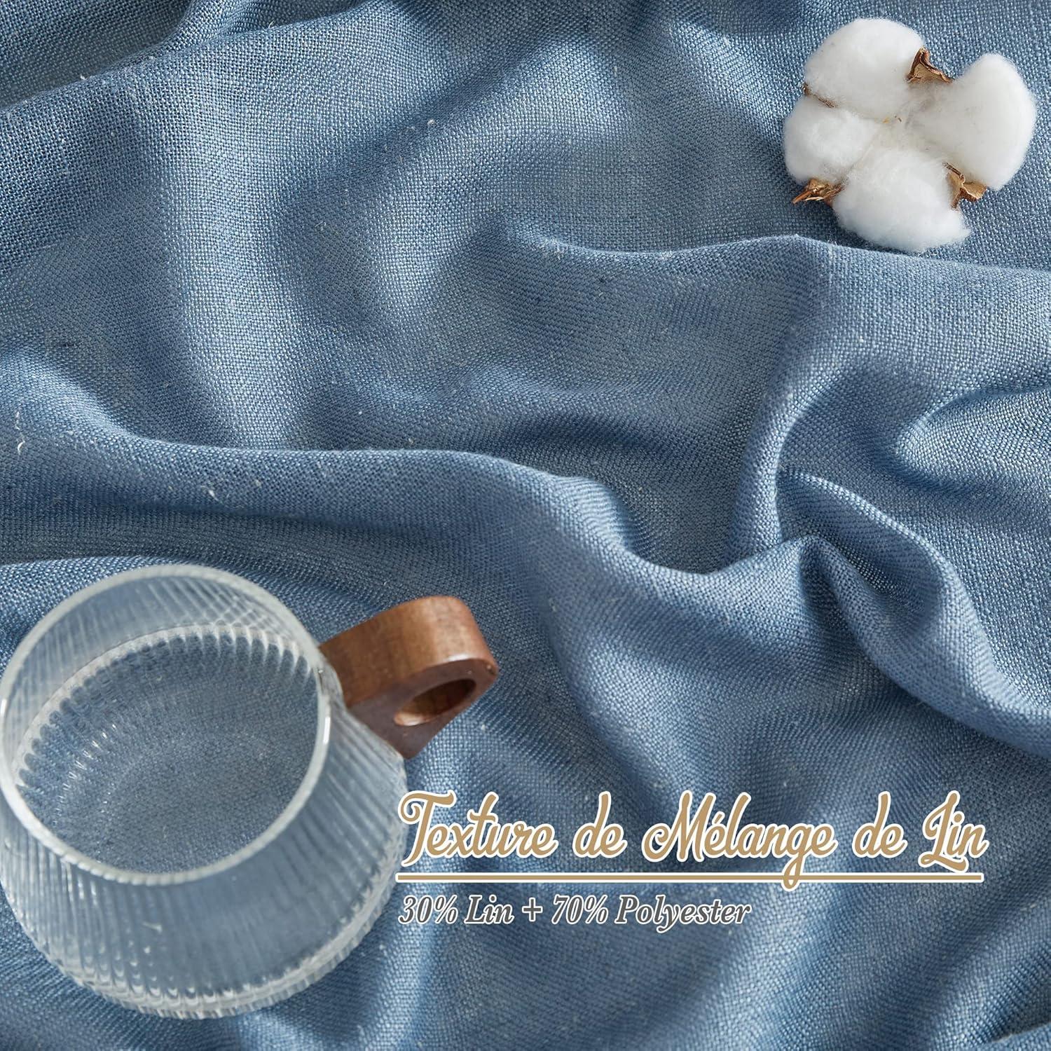 NICETOWN White Linen Sheer Curtains and Drapes 84 inches Long, Rod Pocket & Back Tab semitransparent with Light Through Vertical Window Treatments for Sliding Glass Door & Living Room, 52″W, Set of 2(Linen Stone Blue)