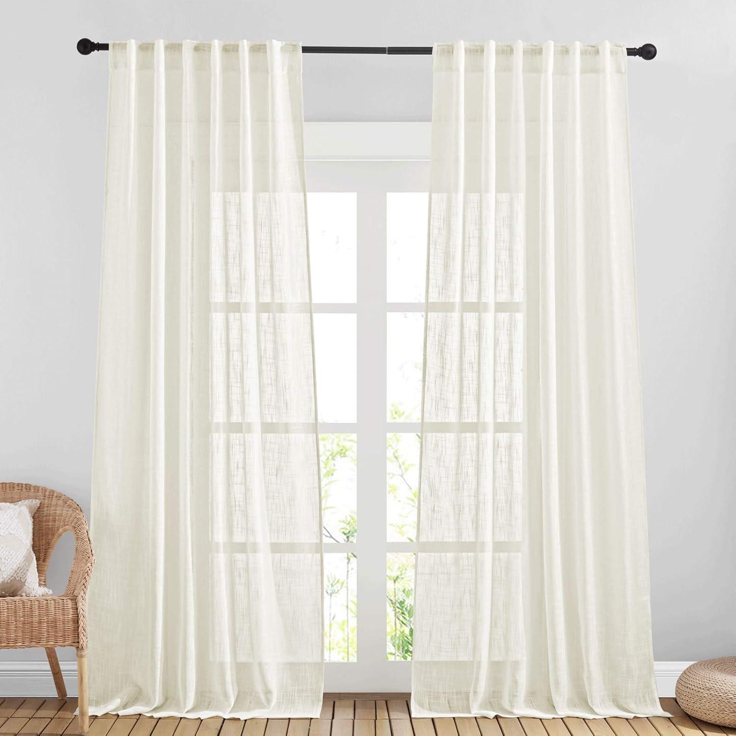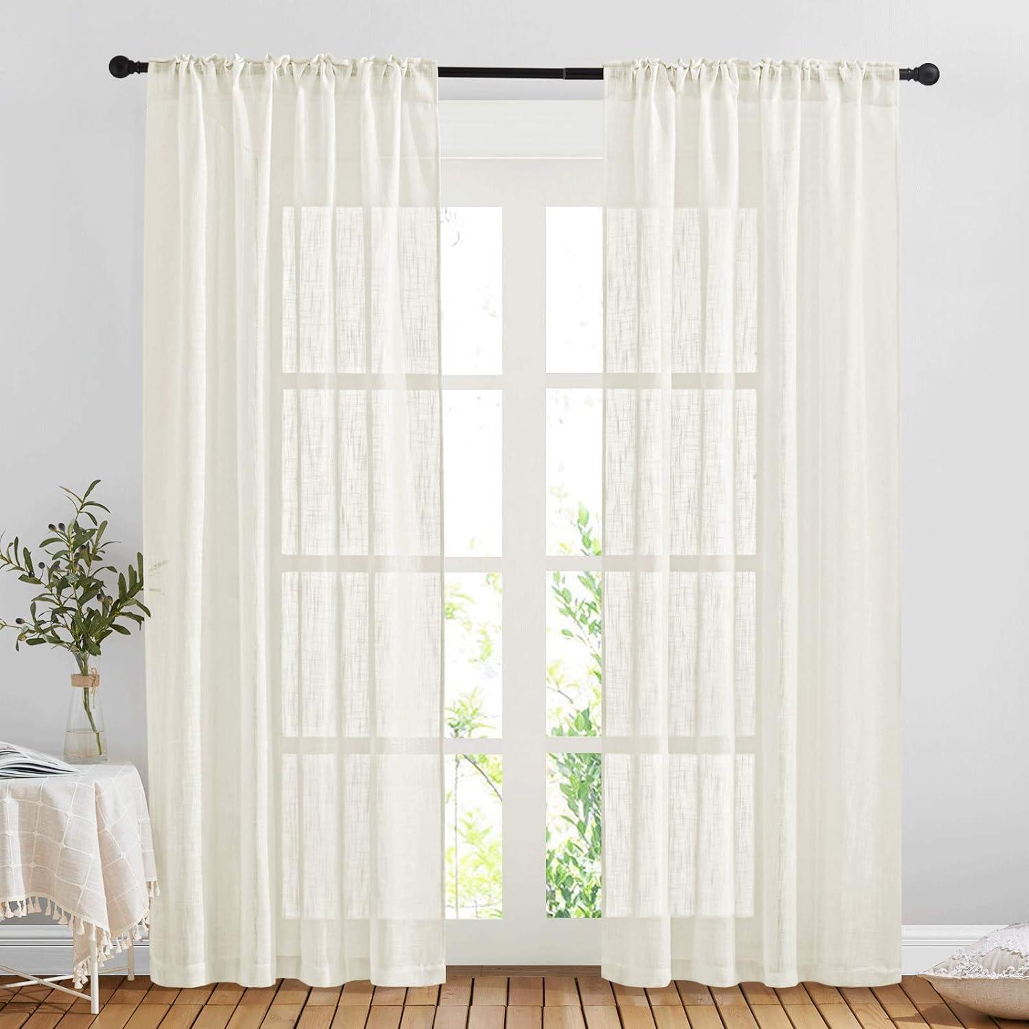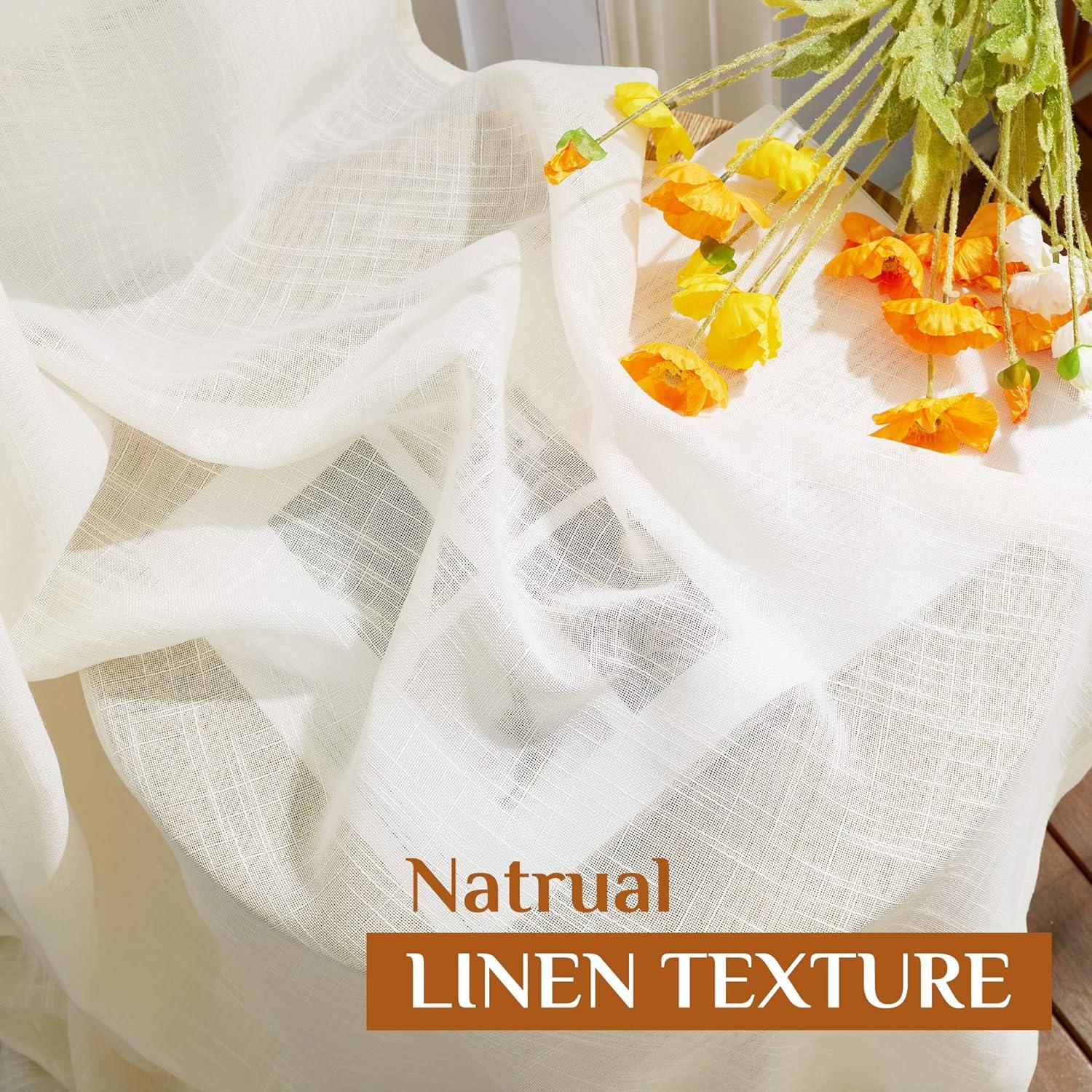 NICETOWN White Linen Sheer Curtains and Drapes 84 inches Long, Rod Pocket & Back Tab semitransparent with Light Through Vertical Window Treatments for Sliding Glass Door & Living Room, 52″W, Set of 2(Natural)