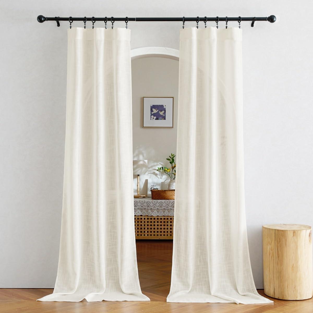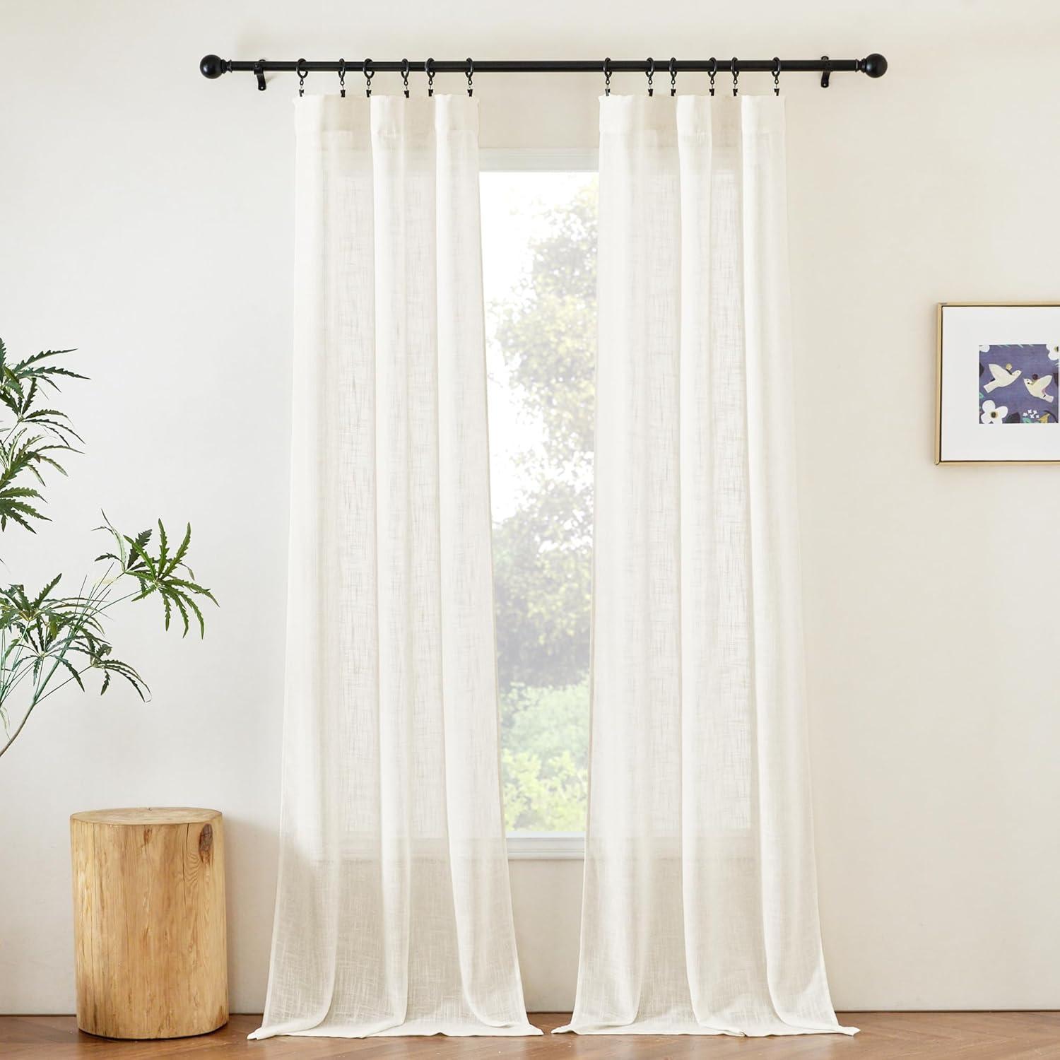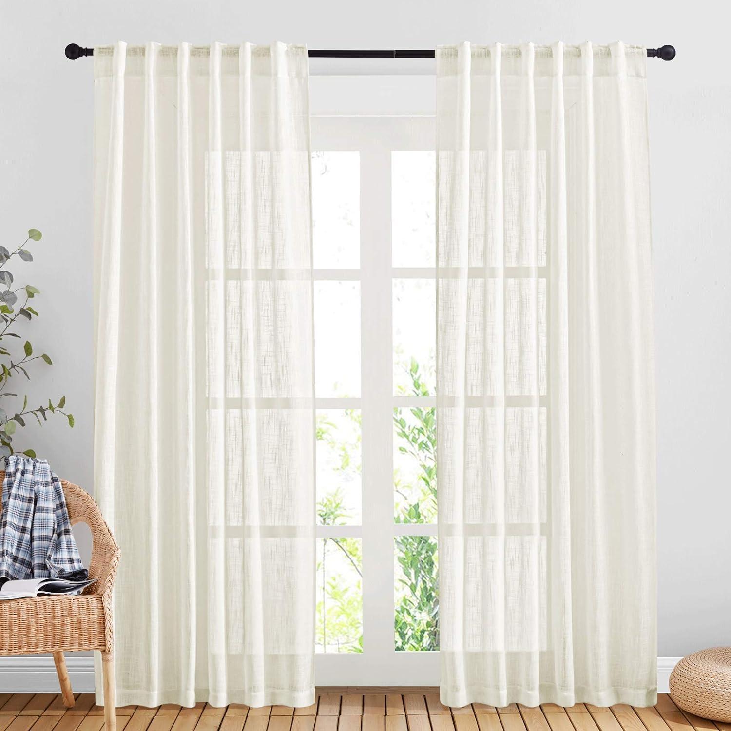 NICETOWN White Linen Sheer Curtains and Drapes 84 inches Long, Rod Pocket & Back Tab semitransparent with Light Through Vertical Window Treatments for Sliding Glass Door & Living Room, 52″W, Set of 2(Natural)