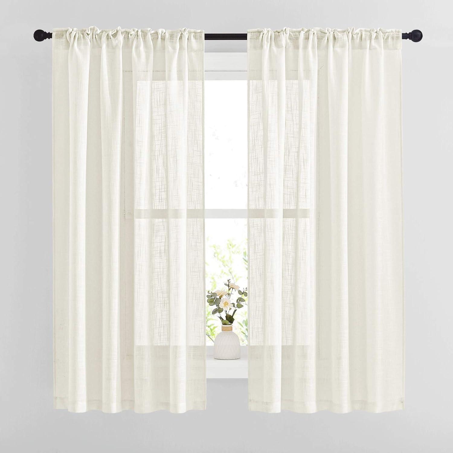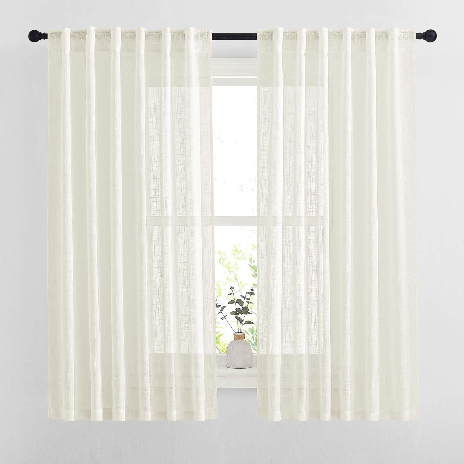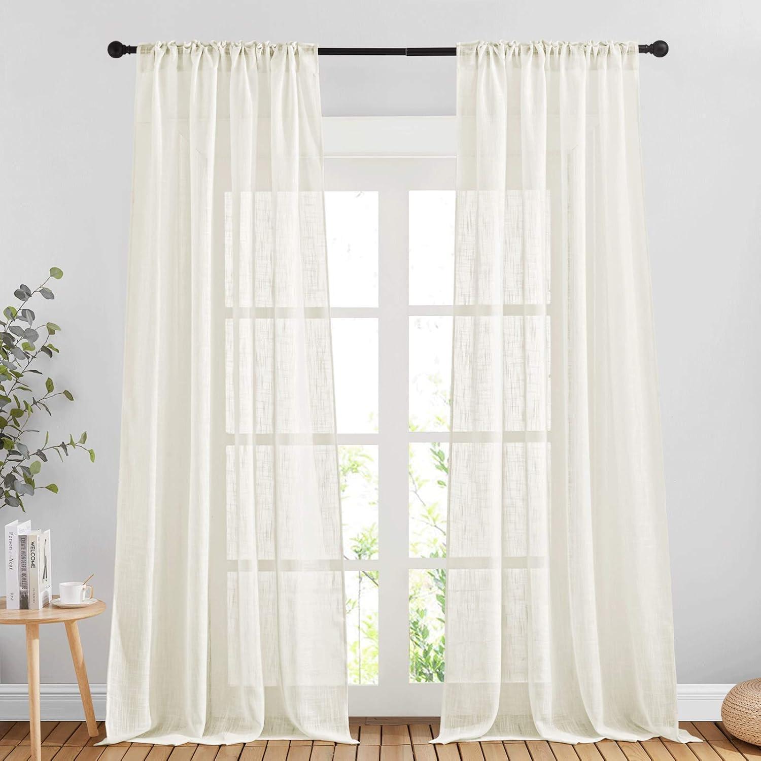 Get up to 60% off on NICETOWN White Linen Sheer Curtains and Drapes 84 inches Long, Rod Pocket & Back Tab semitransparent with Light Through Vertical Window Treatments for Sliding Glass Door & Living Room, 52"W, Set of 2(Natural) styles during our winter sale event.