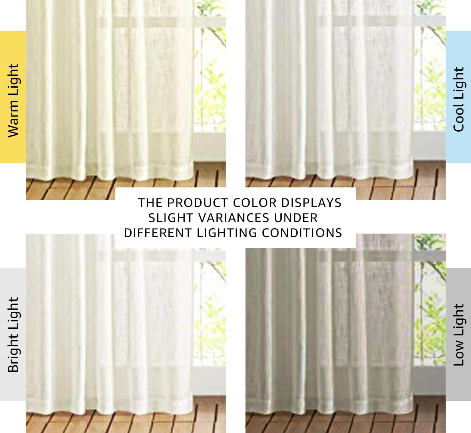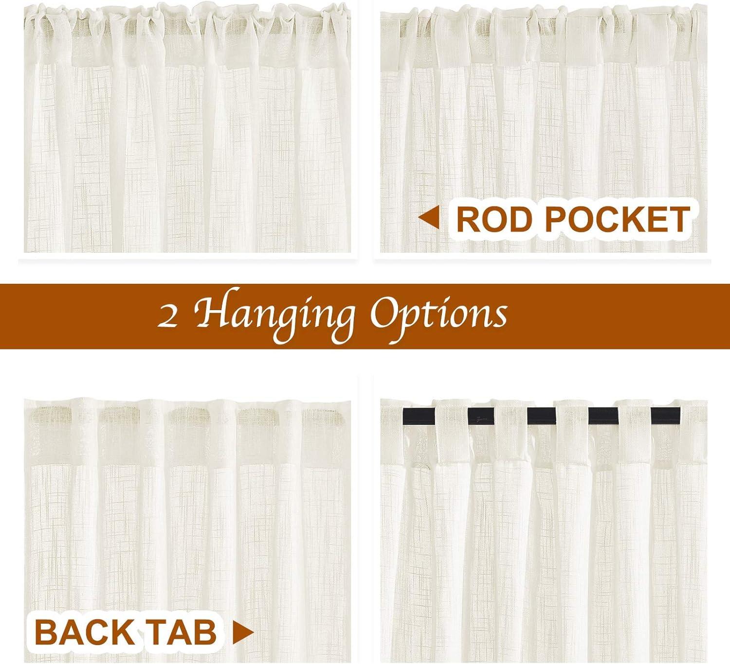 Basic Info.: Each panel of White linen sheer curtains measures 52″ wide, sold as 2 panels. The inner diameter of the rod pocket and each back tab is 2.3″, which makes the curtains are easy to install and move.