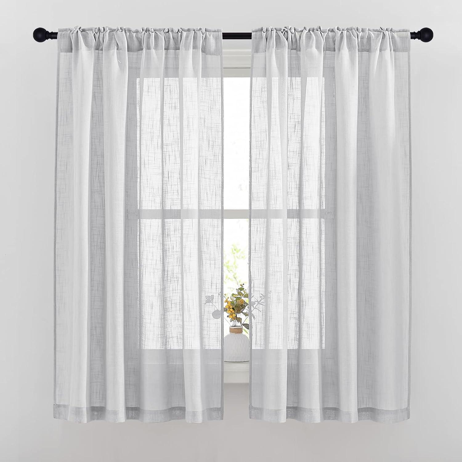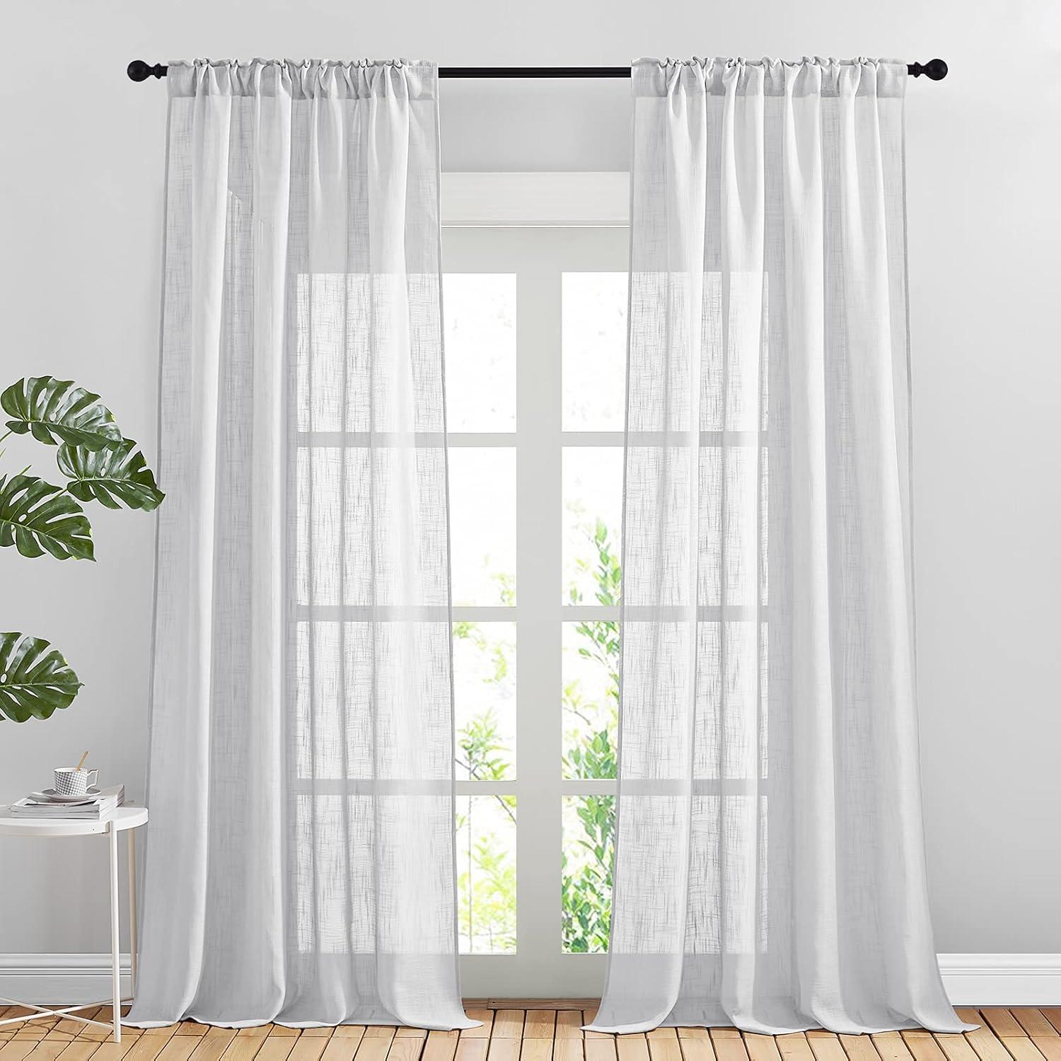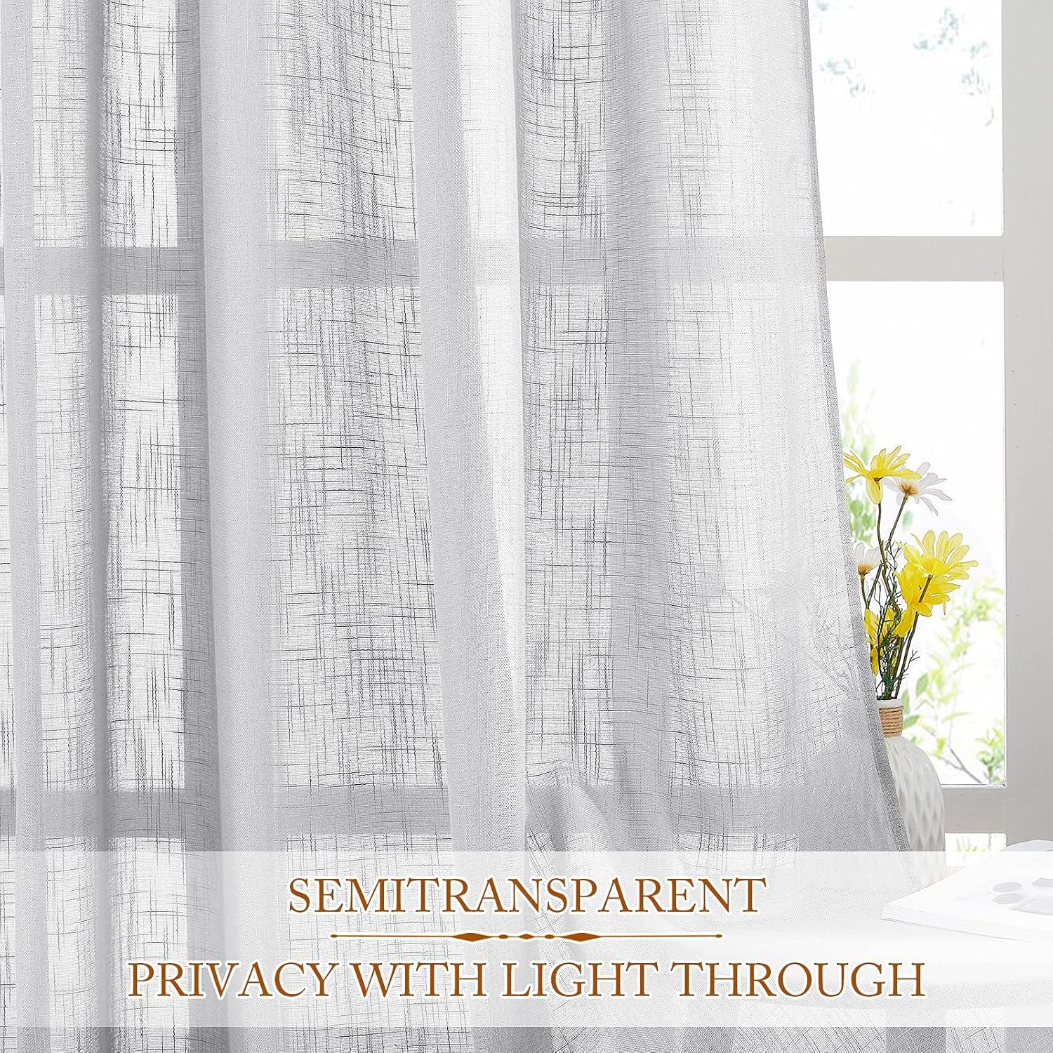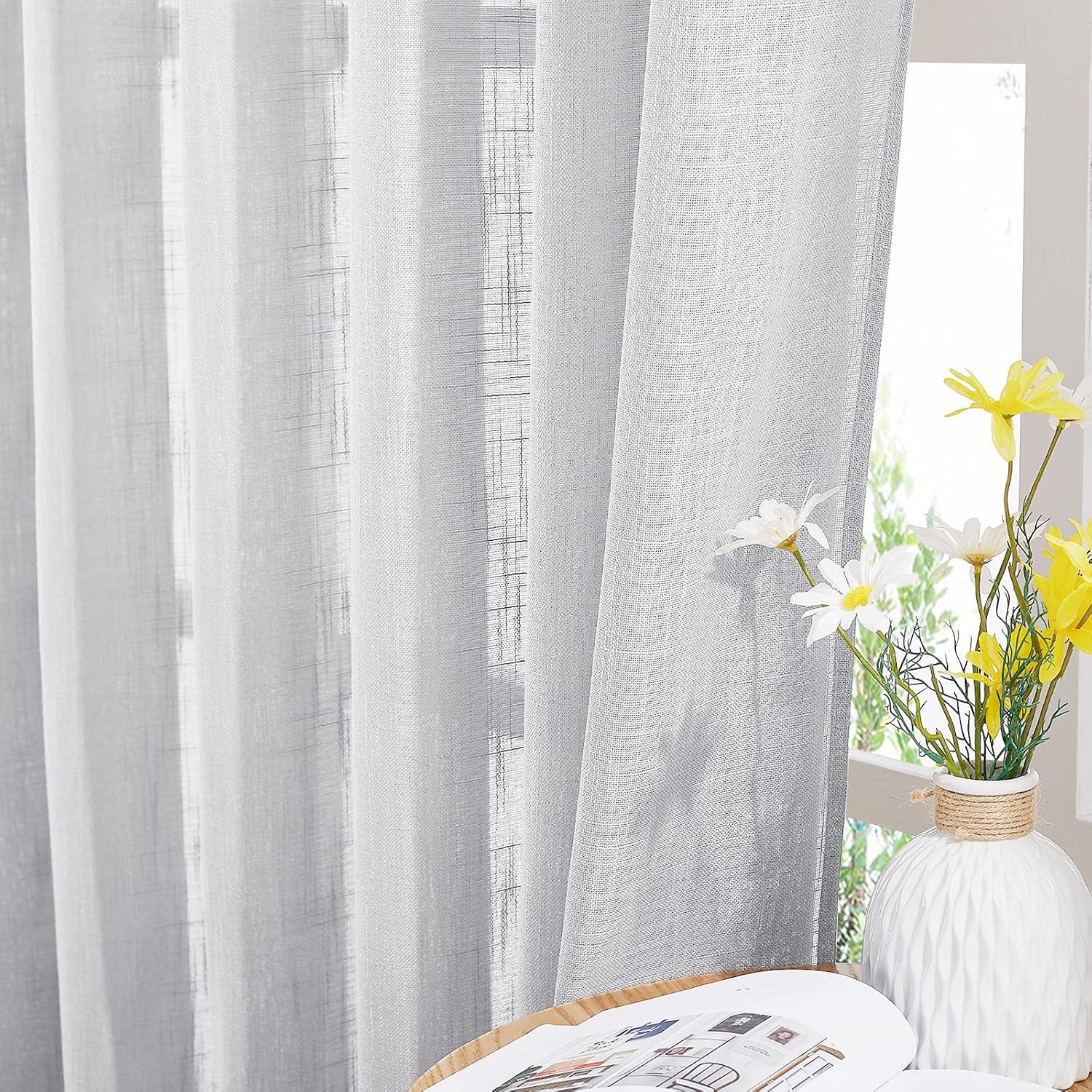 NICETOWN White Linen Sheer Curtains and Drapes 84 inches Long, Rod Pocket & Back Tab semitransparent with Light Through Vertical Window Treatments for Sliding Glass Door & Living Room, 52″W, Set of 2(Silver Grey)