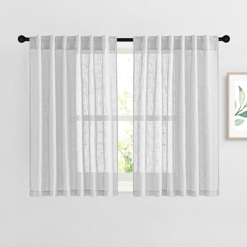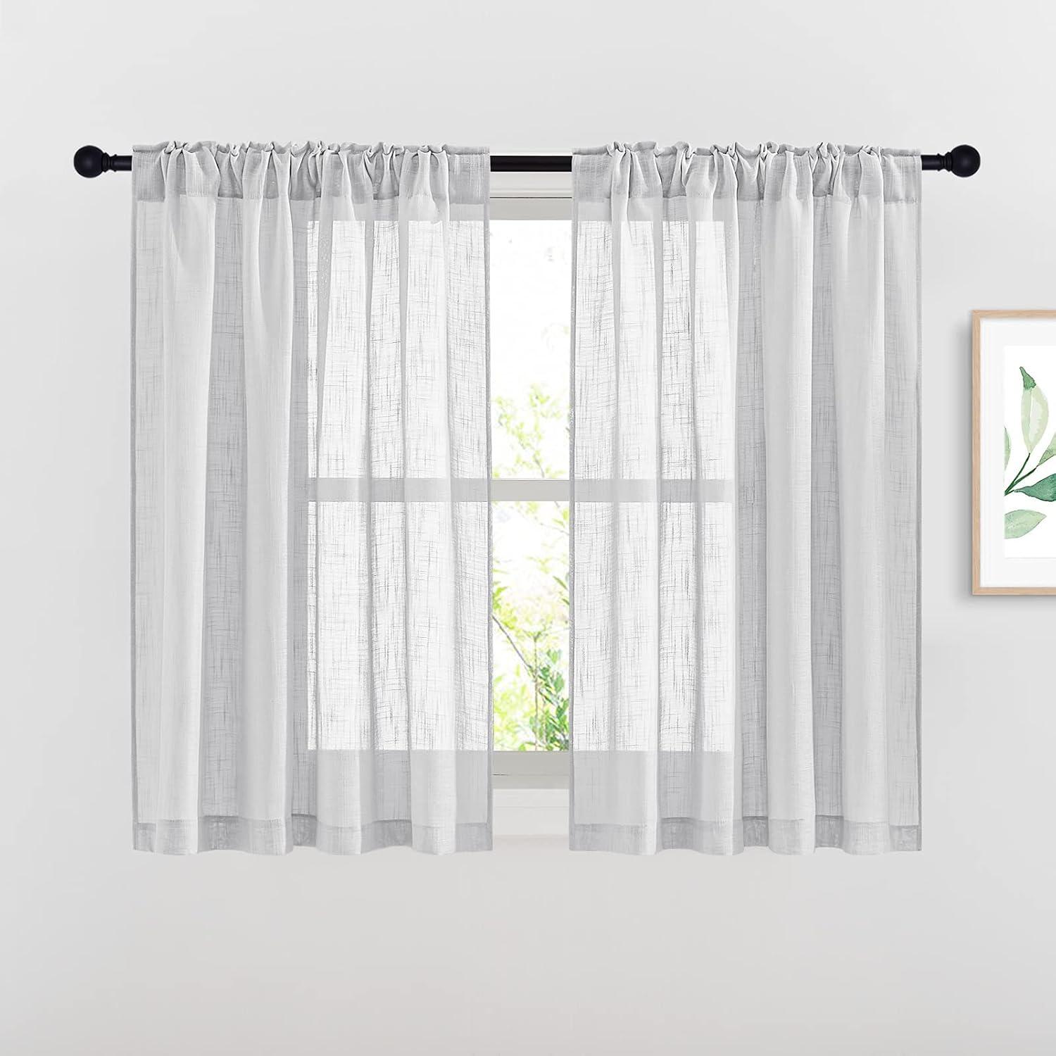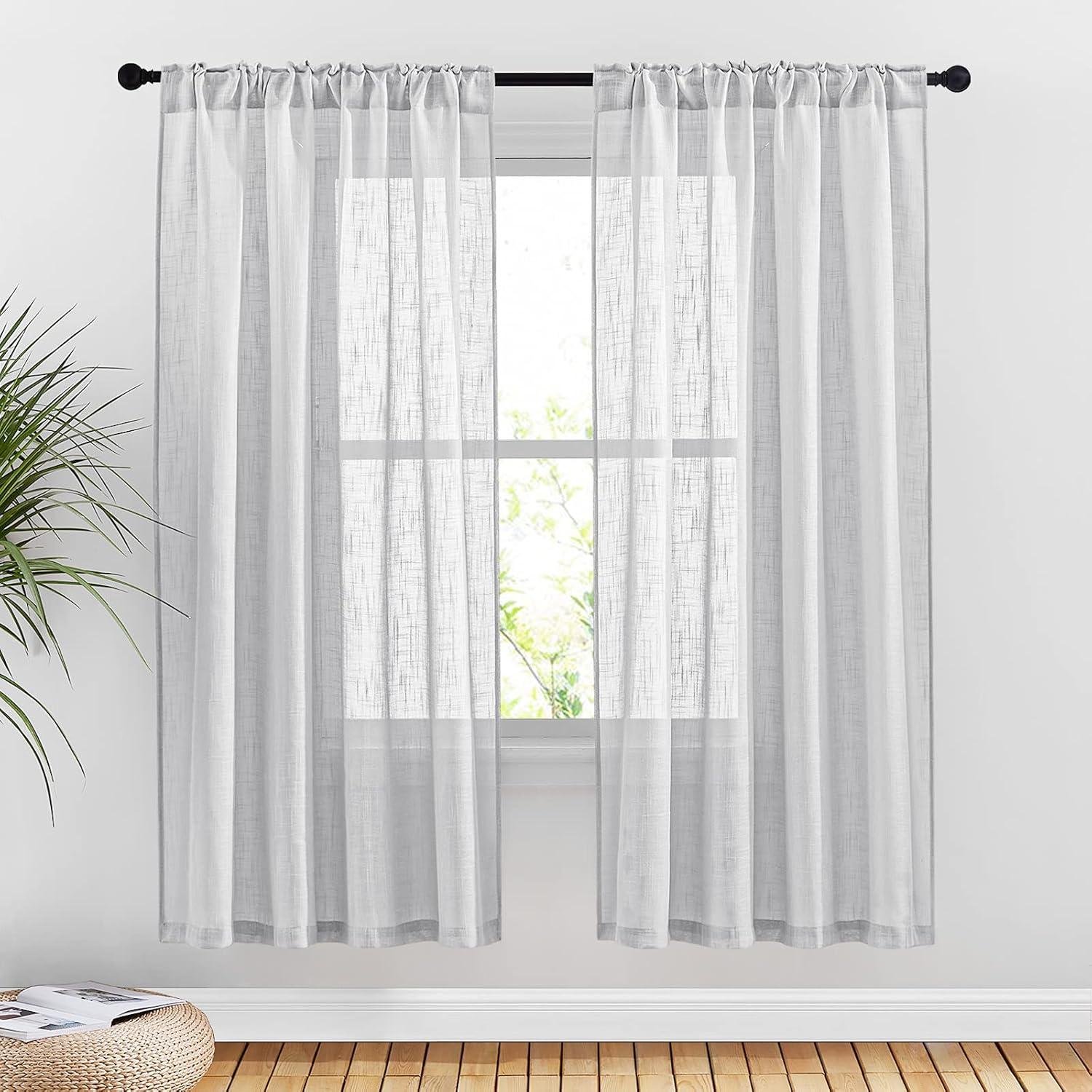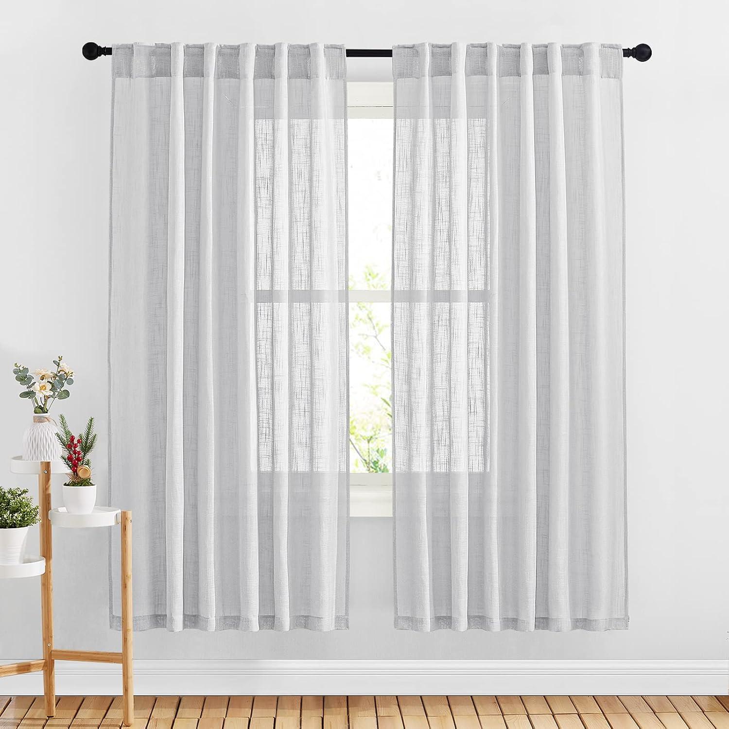 NICETOWN White Linen Sheer Curtains and Drapes 84 inches Long, Rod Pocket & Back Tab semitransparent with Light Through Vertical Window Treatments for Sliding Glass Door & Living Room, 52″W, Set of 2(Silver Grey)