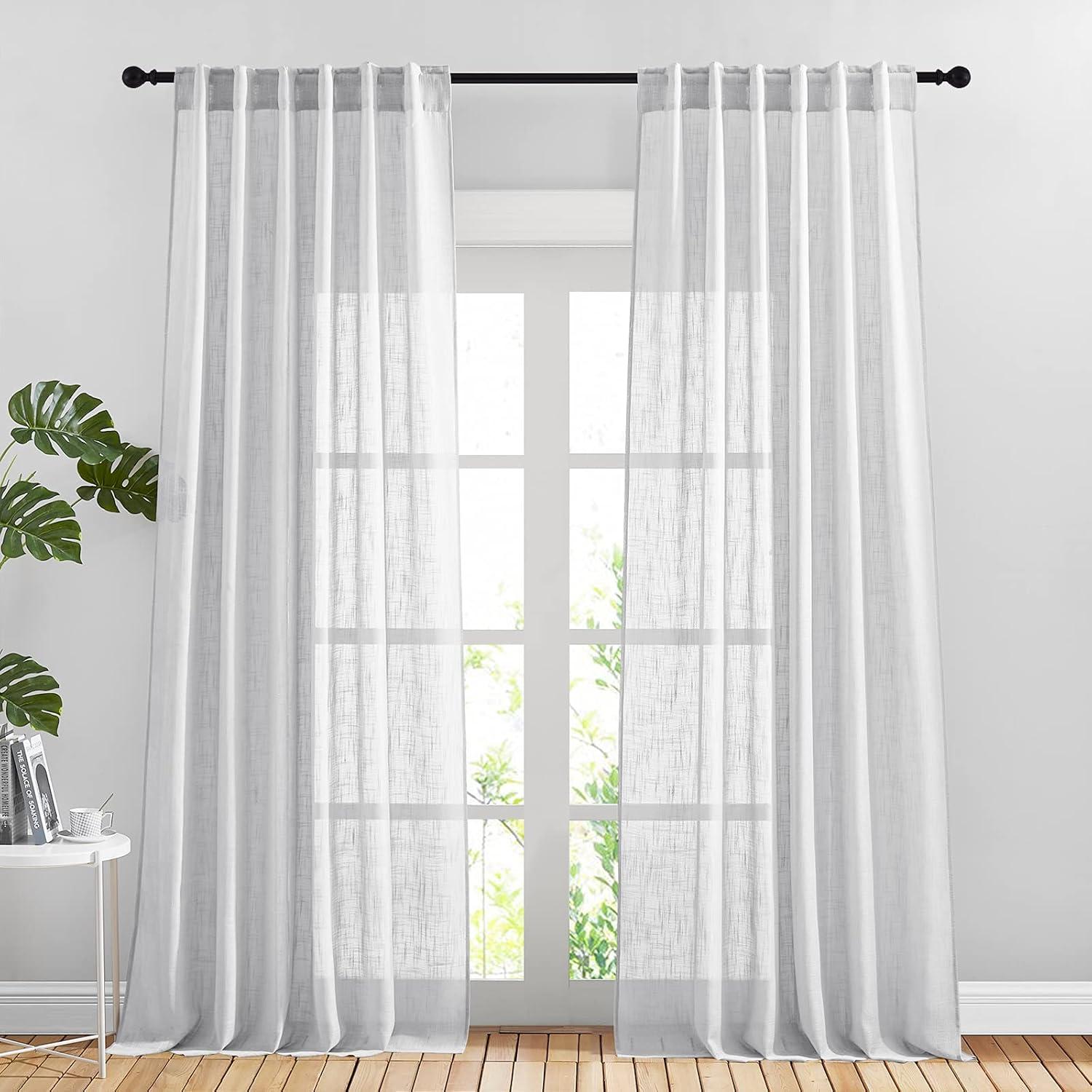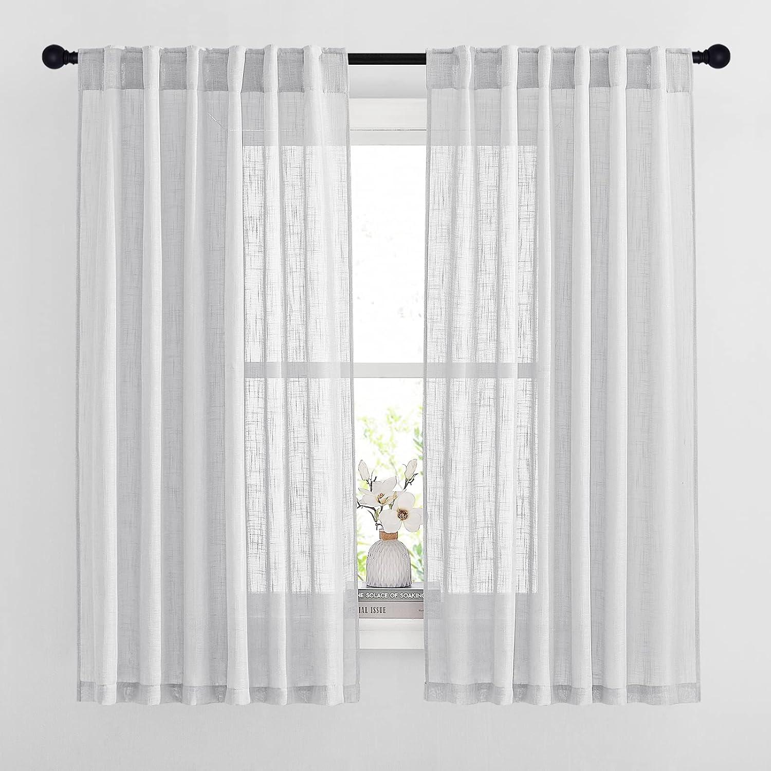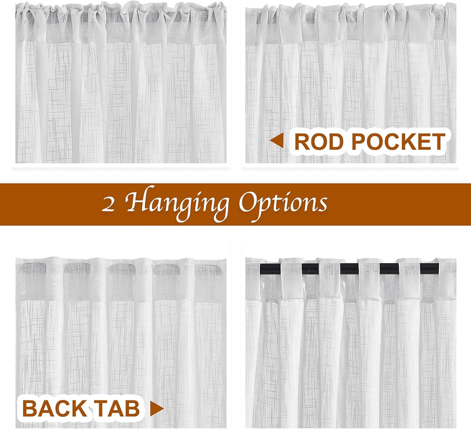 Basic Info.: Each panel of White linen sheer curtains measures 52″ wide, sold as 2 panels. The inner diameter of the rod pocket and each back tab is 2.3″, which makes the curtains are easy to install and move.