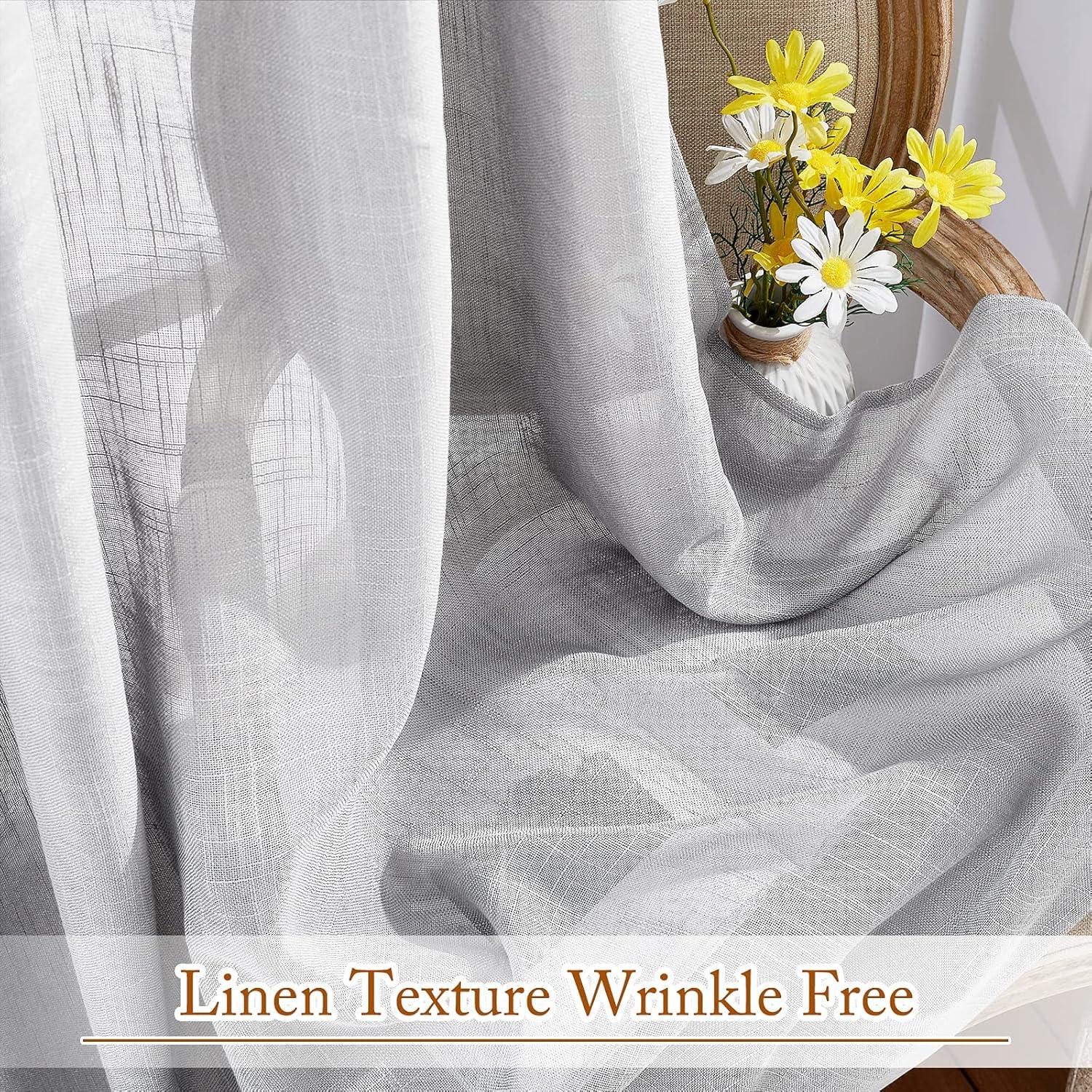 NICETOWN White Linen Sheer Curtains and Drapes 84 inches Long, Rod Pocket & Back Tab semitransparent with Light Through Vertical Window Treatments for Sliding Glass Door & Living Room, 52"W, Set of 2(Silver Grey)