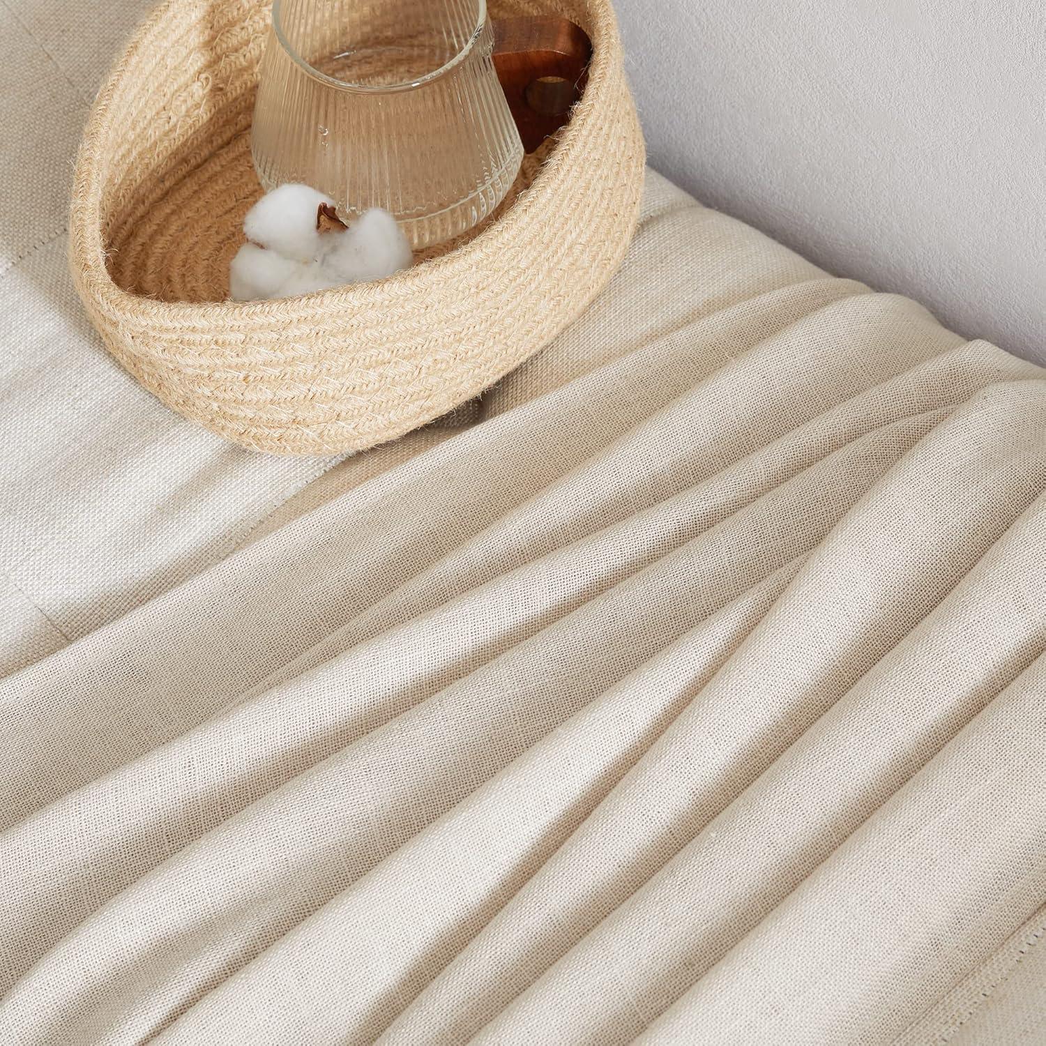 NICETOWN White Linen Sheer Curtains and Drapes 84 inches Long, Rod Pocket & Back Tab semitransparent with Light Through Vertical Window Treatments for Sliding Glass Door & Living Room, 52"W, Set of 2(Linen Cream)
