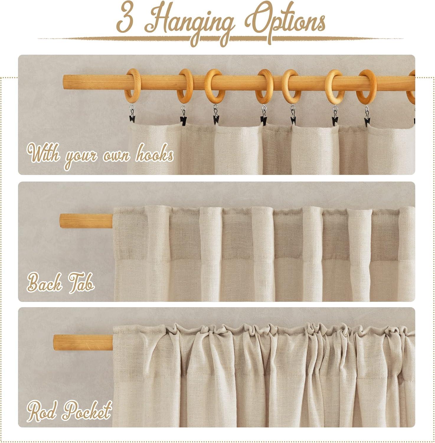 Basic Info.: Each panel of White linen sheer curtains measures 52″ wide, sold as 2 panels. The inner diameter of the rod pocket and each back tab is 2.3″, which makes the curtains are easy to install and move.