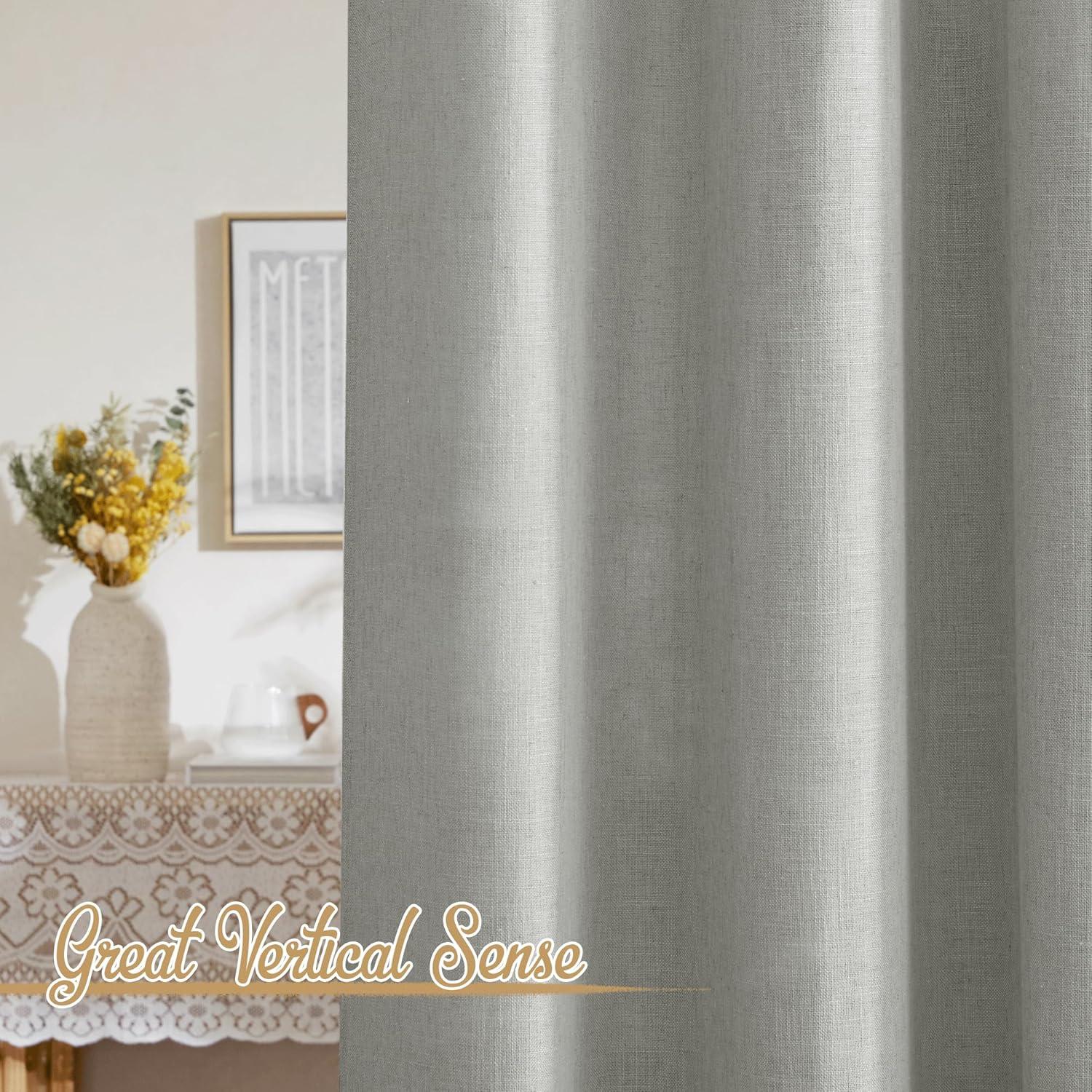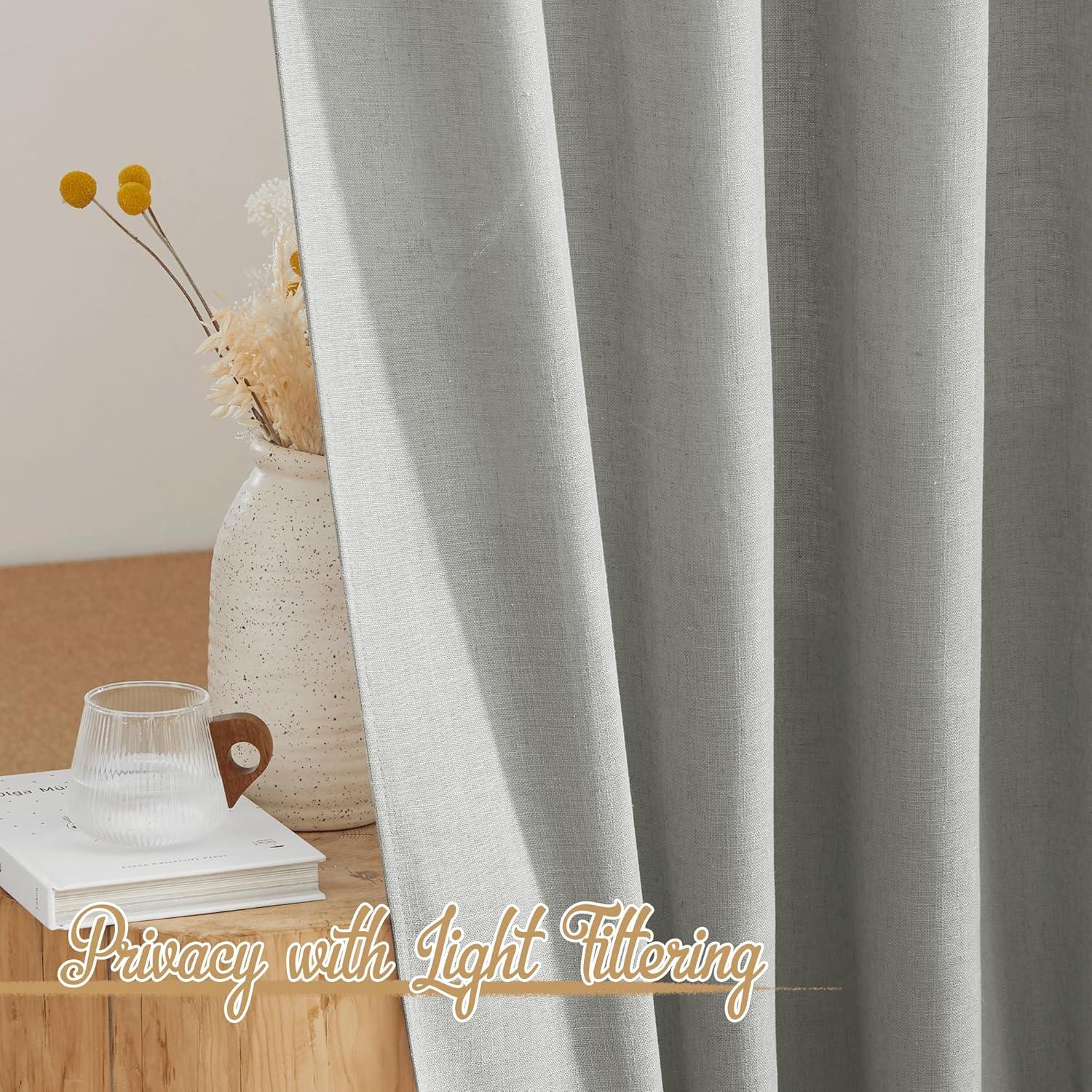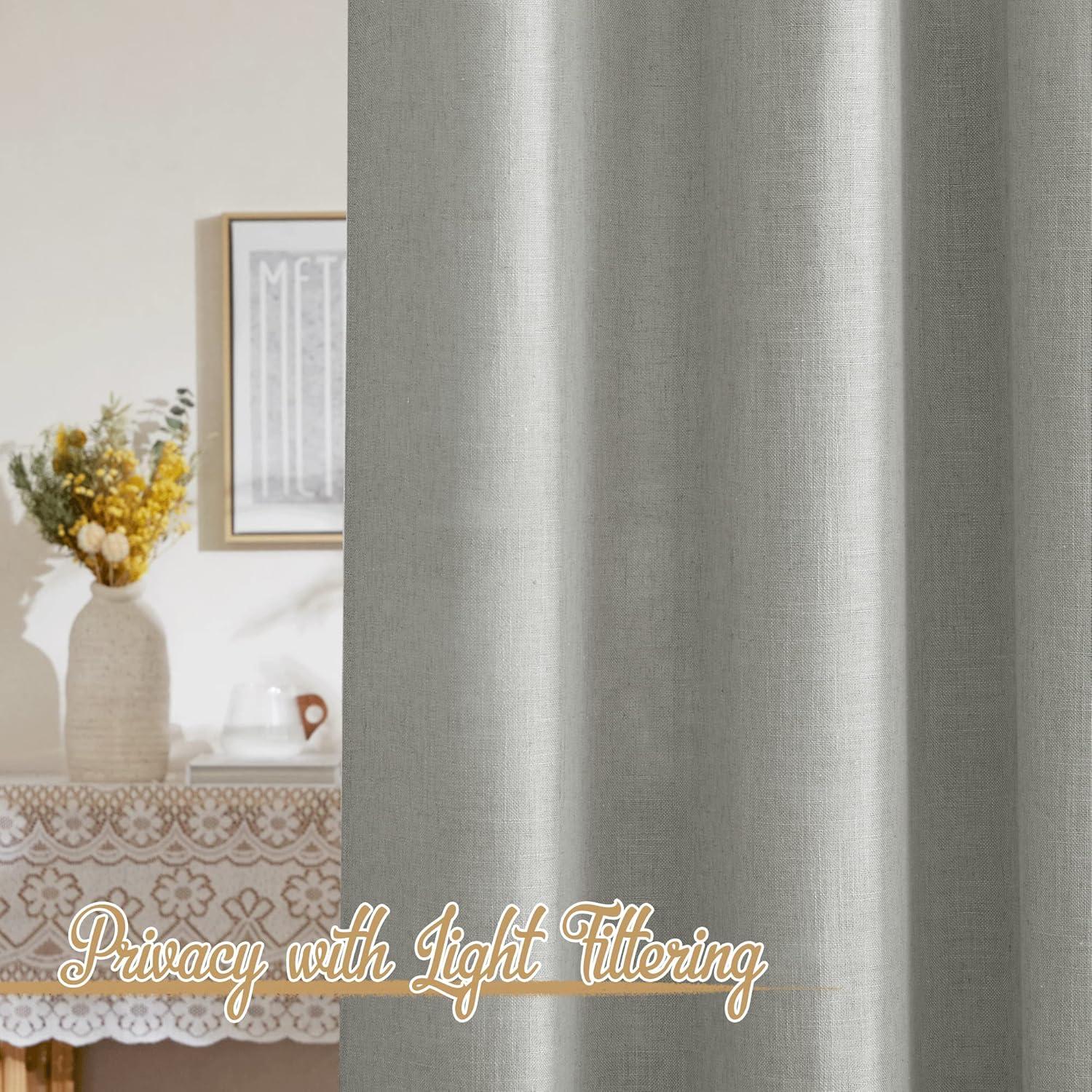 NICETOWN White Linen Sheer Curtains and Drapes 84 inches Long, Rod Pocket & Back Tab semitransparent with Light Through Vertical Window Treatments for Sliding Glass Door & Living Room, 52″W, Set of 2(Linen Gray)