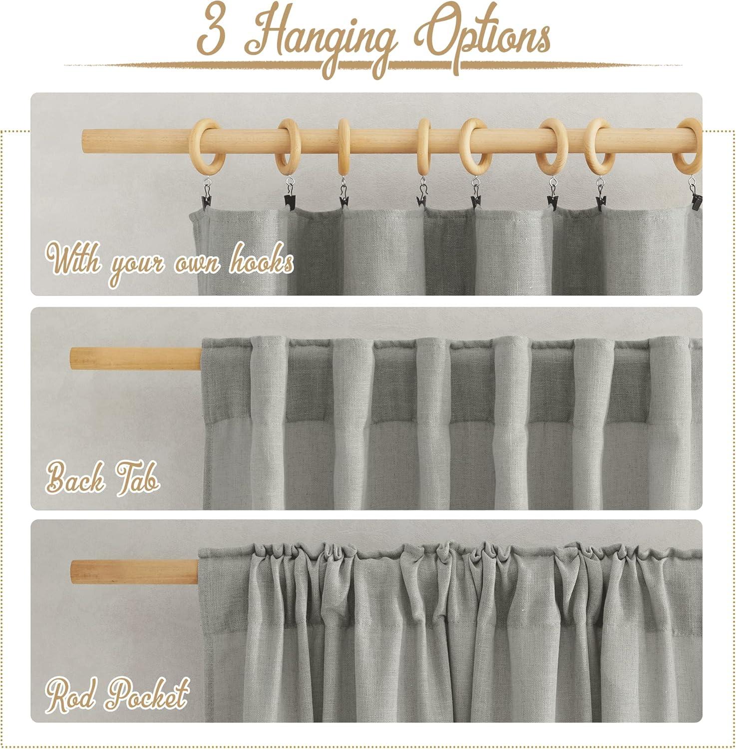 NICETOWN White Linen Sheer Curtains and Drapes 84 inches Long, Rod Pocket & Back Tab semitransparent with Light Through Vertical Window Treatments for Sliding Glass Door & Living Room, 52"W, Set of 2(Linen Gray)