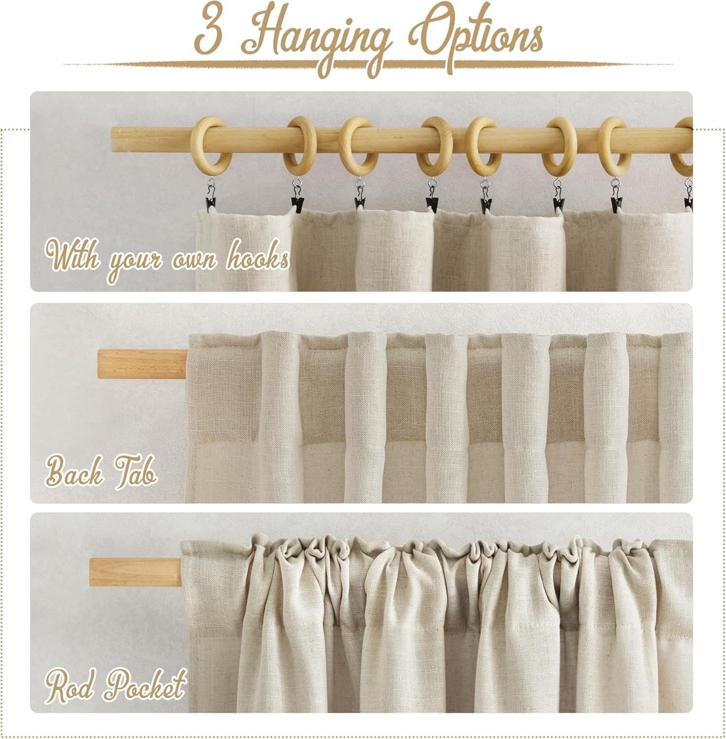 Basic Info.: Each panel of White linen sheer curtains measures 52″ wide, sold as 2 panels. The inner diameter of the rod pocket and each back tab is 2.3″, which makes the curtains are easy to install and move.