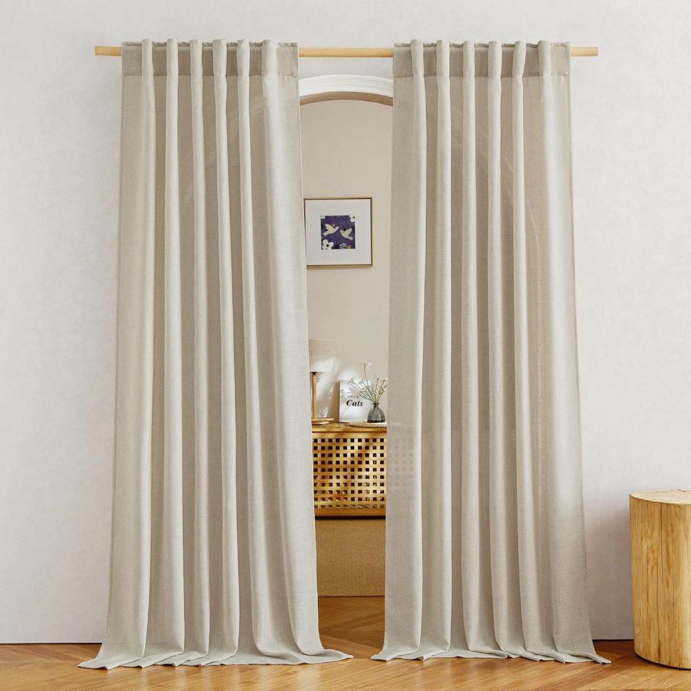 Get your hands on our newest NICETOWN White Linen Sheer Curtains and Drapes 84 inches Long, Rod Pocket & Back Tab semitransparent with Light Through Vertical Window Treatments for Sliding Glass Door & Living Room, 52"W, Set of 2(Linen Light Taupe) and enjoy a limited-time discount offer.