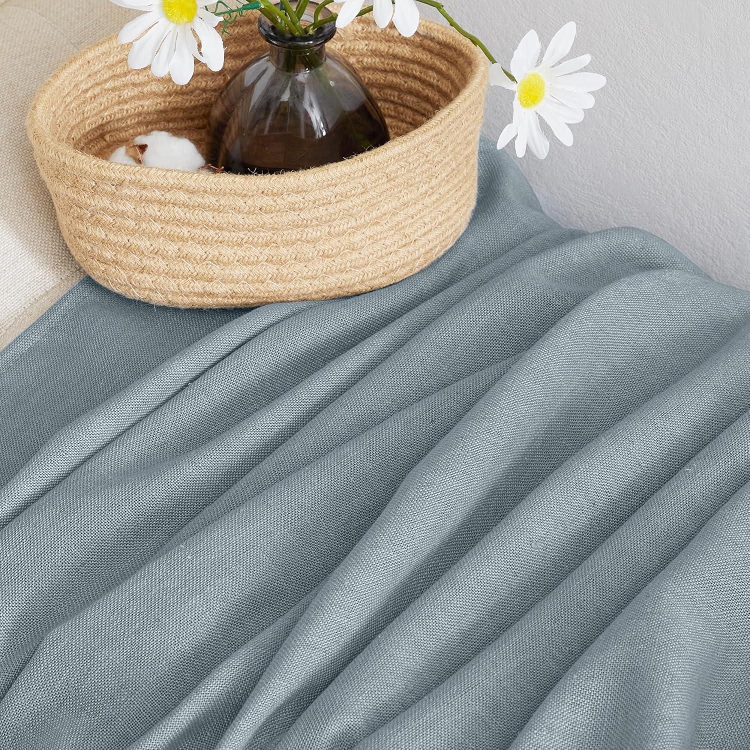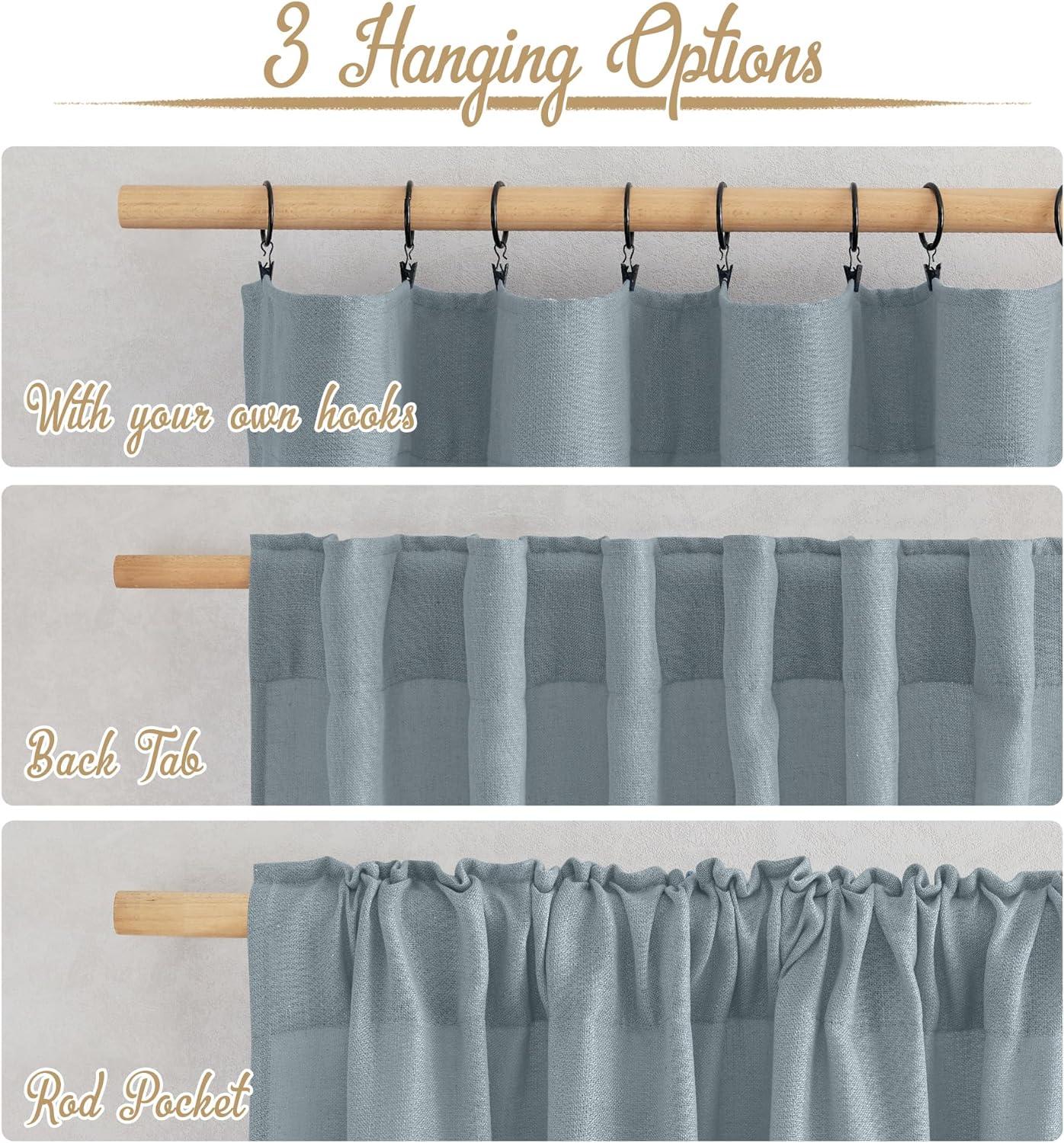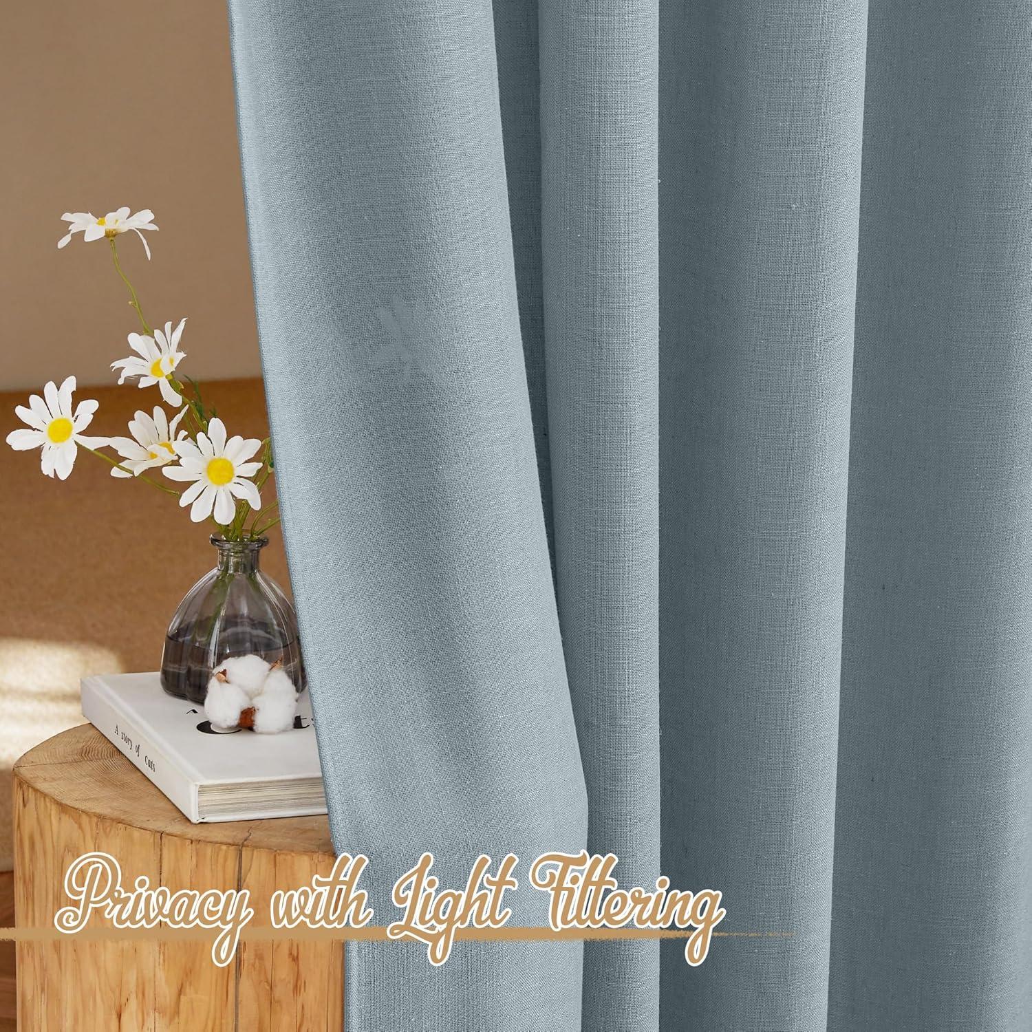 NICETOWN White Linen Sheer Curtains and Drapes 84 inches Long, Rod Pocket & Back Tab semitransparent with Light Through Vertical Window Treatments for Sliding Glass Door & Living Room, 52"W, Set of 2(Linen Mist Blue)
