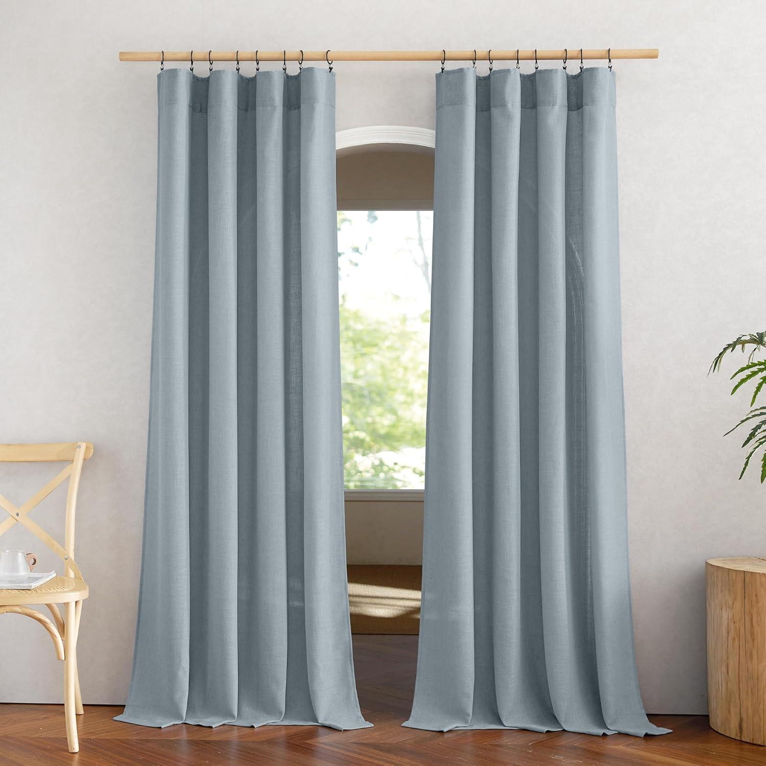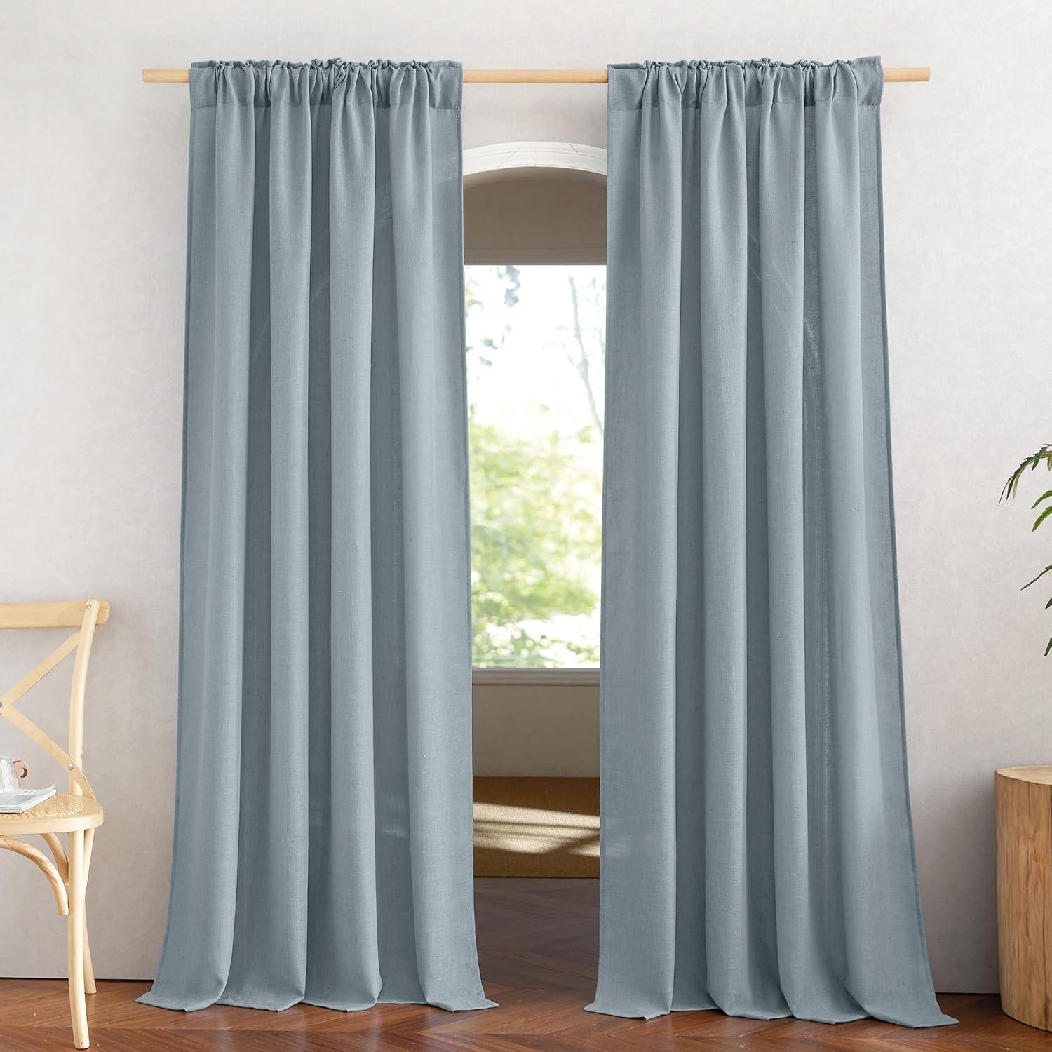 NICETOWN White Linen Sheer Curtains and Drapes 84 inches Long, Rod Pocket & Back Tab semitransparent with Light Through Vertical Window Treatments for Sliding Glass Door & Living Room, 52″W, Set of 2(Linen Mist Blue)