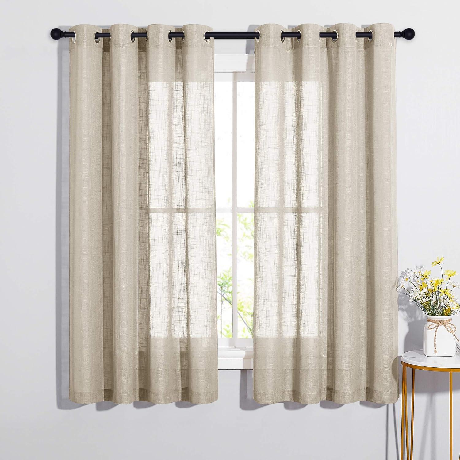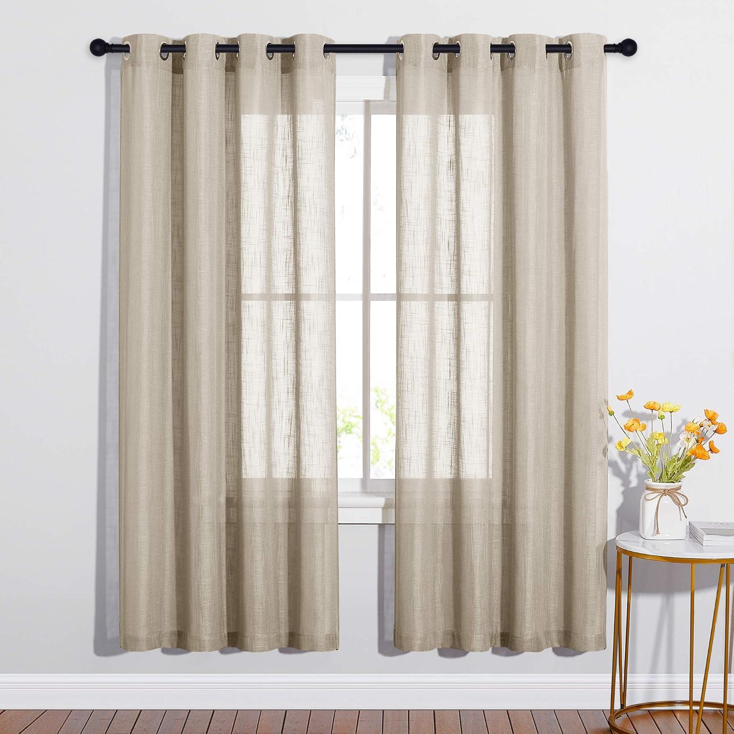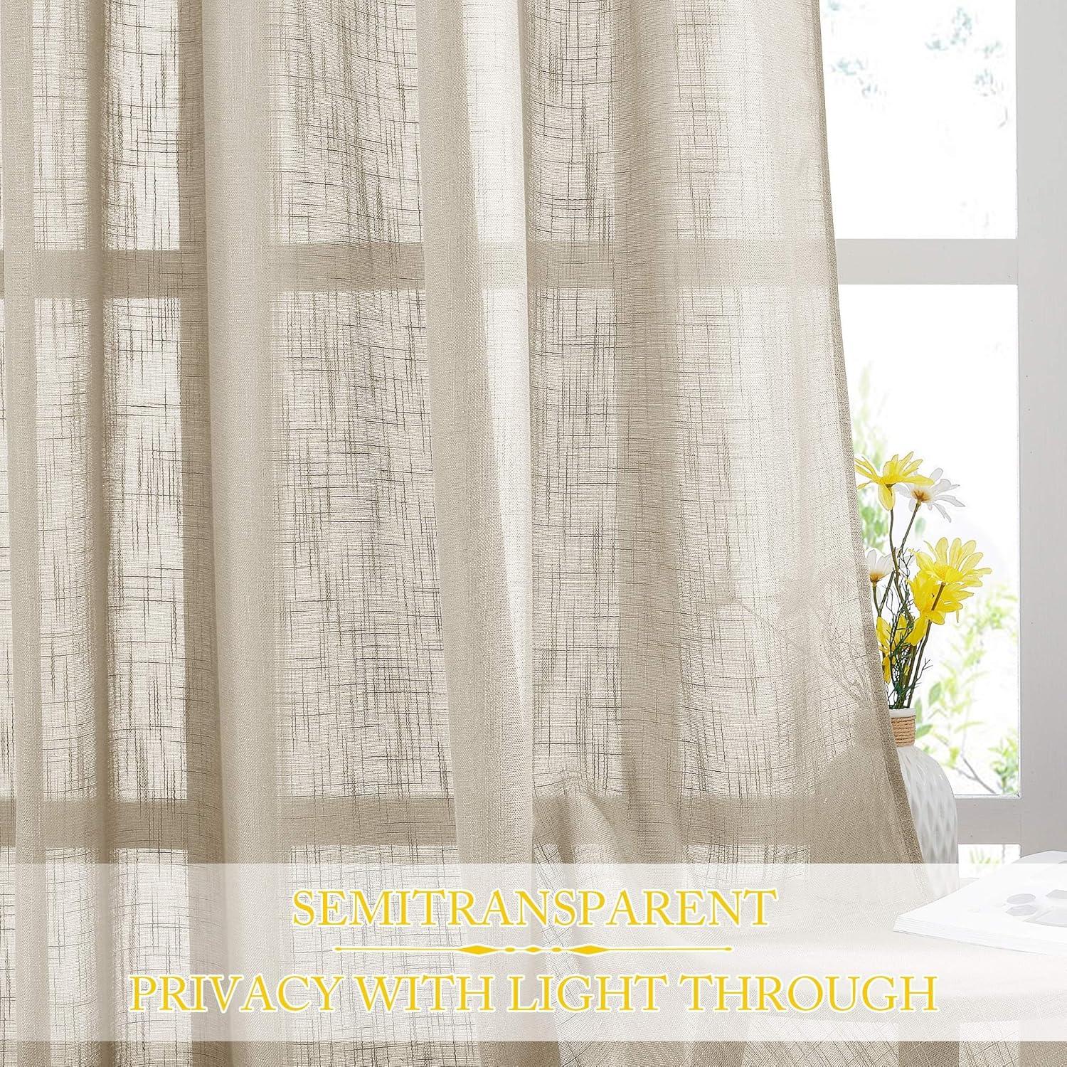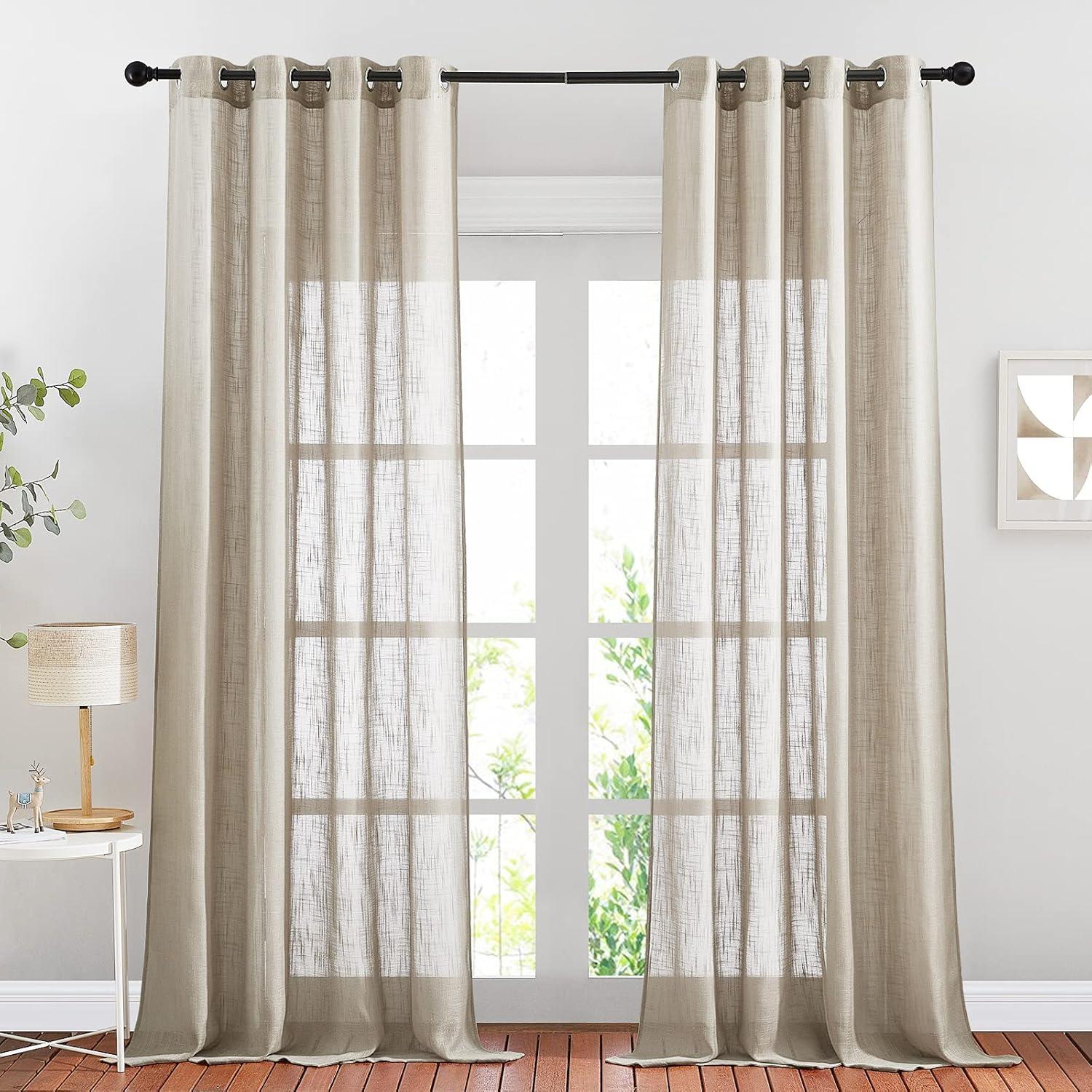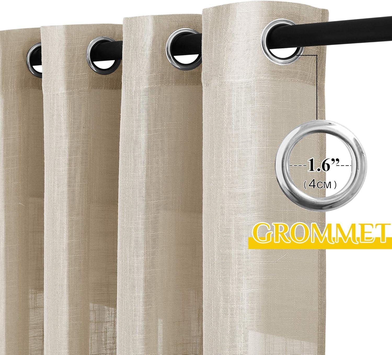 NICETOWN White Sheer Linen Curtains for Windows 84 inch Length, Grommet Top Semi Sheer Vertical Drapes Privacy with Light Filter for Bedroom/Living Room/Sliding Door, 52 inch Wide, 2 PCs(Taupe)