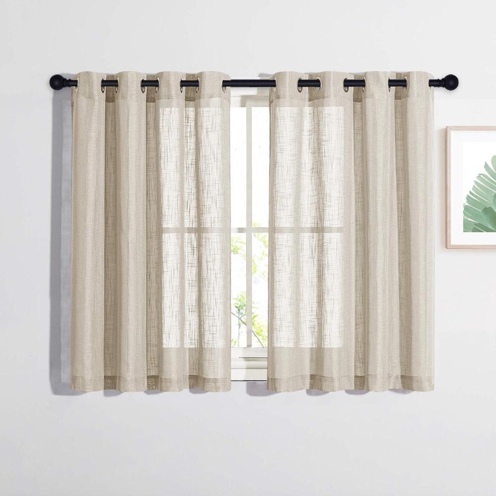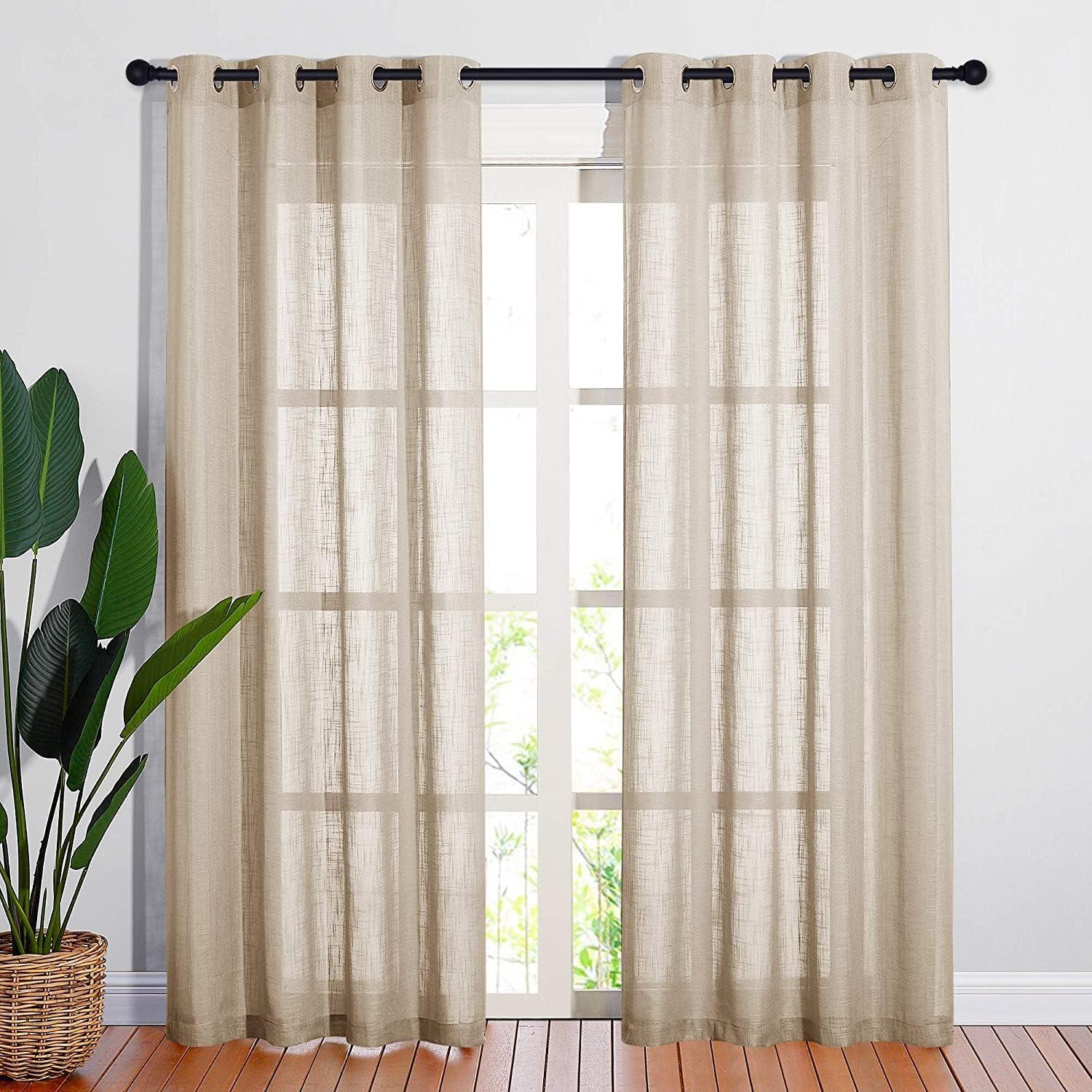 imageNICETOWN White Sheer Linen Curtains for Windows 84 inch Length Grommet Top Semi Sheer Vertical Drapes Privacy with Light Filter for BedroomLiving RoomSliding Door 52 inch Wide 2 PCsTaupe