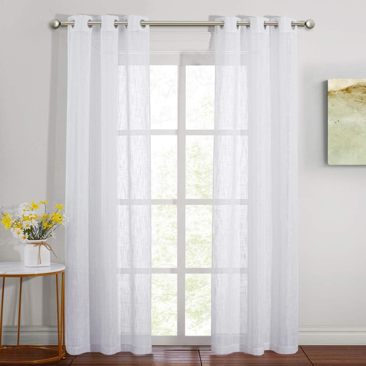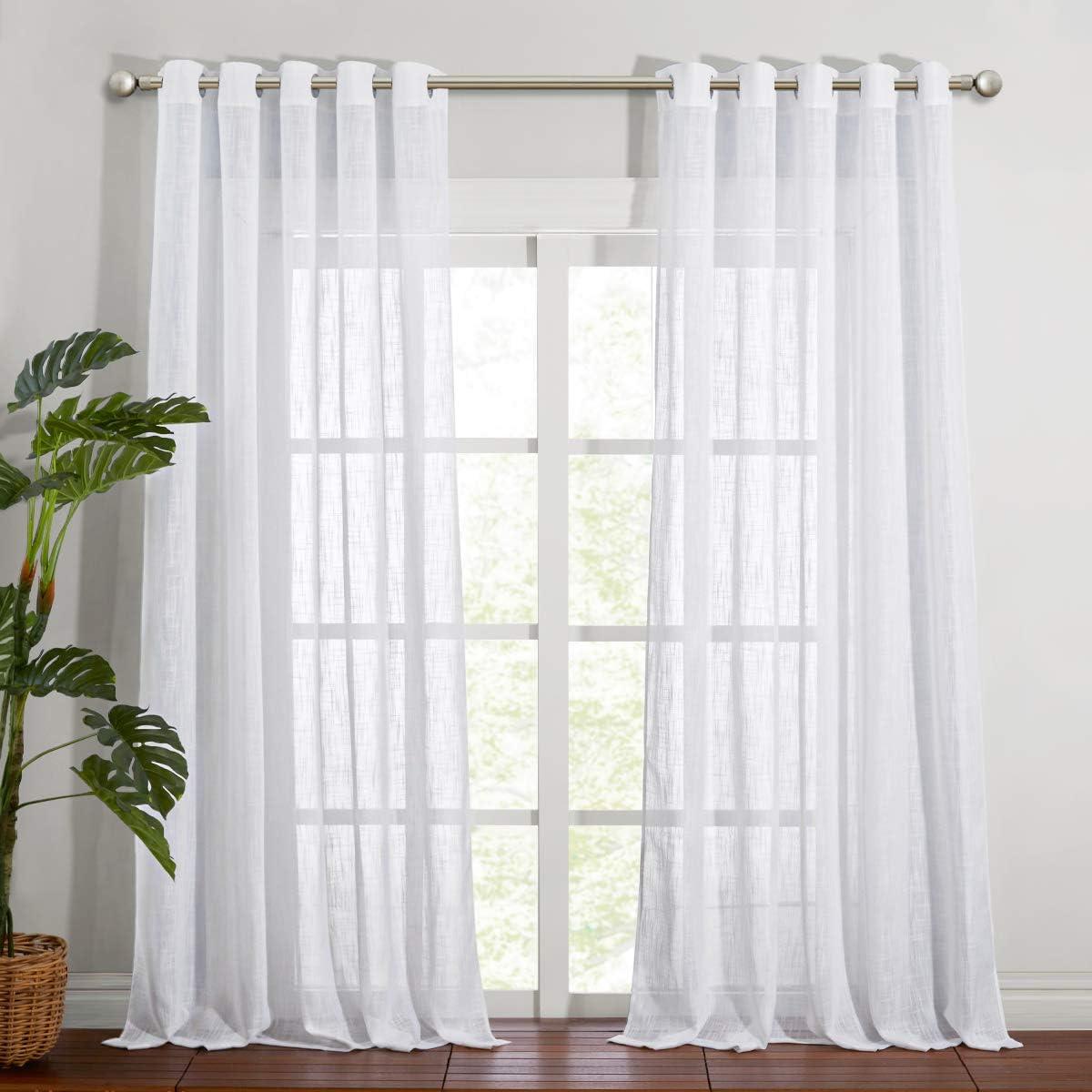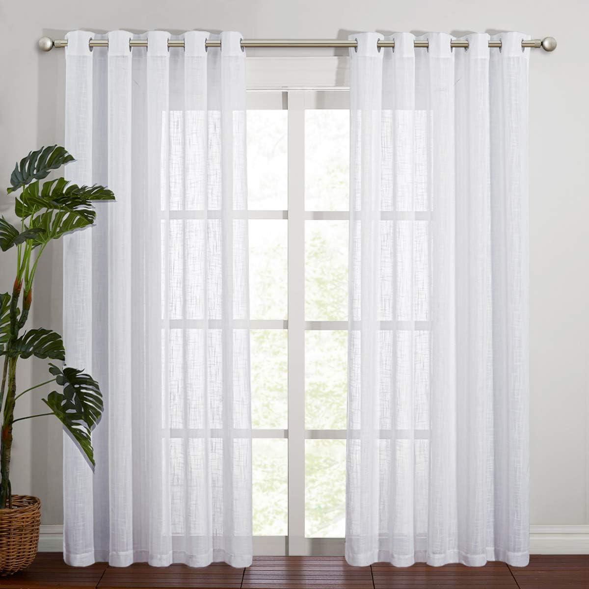 NICETOWN White Sheer Linen Curtains for Windows 84 inch Length, Grommet Top Semi Sheer Vertical Drapes Privacy with Light Filter for Bedroom/Living Room/Sliding Door, 52 inch Wide, 2 PCs(White)