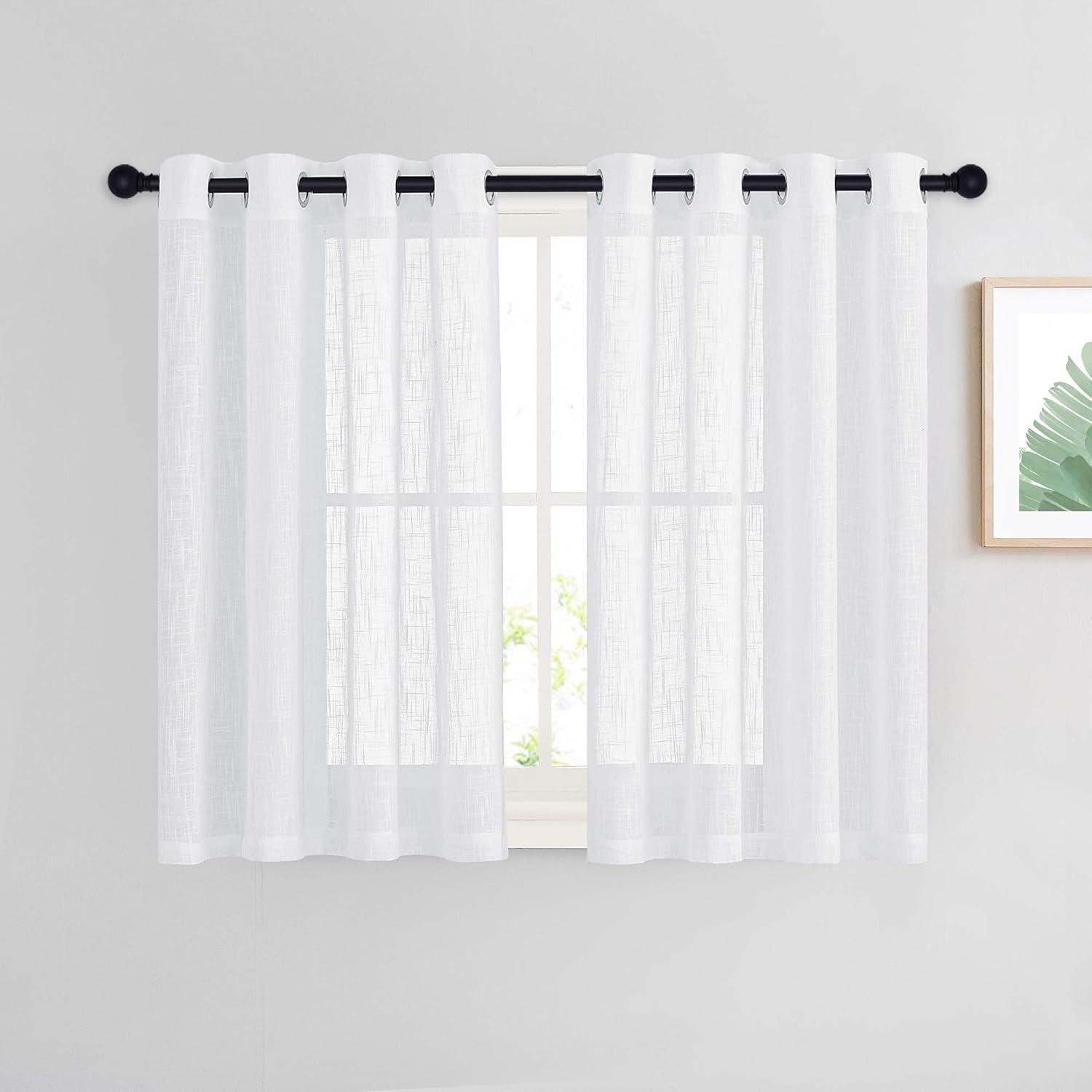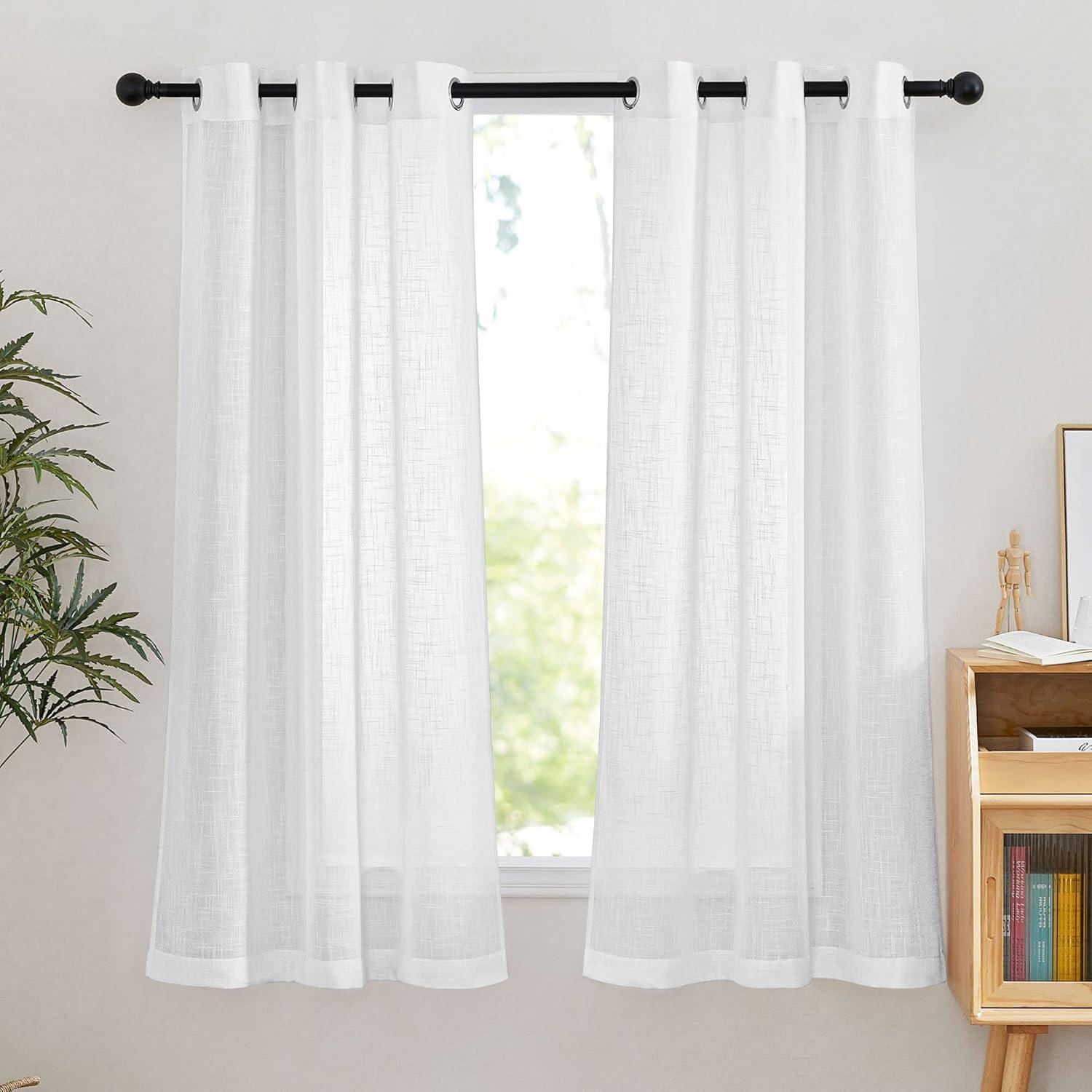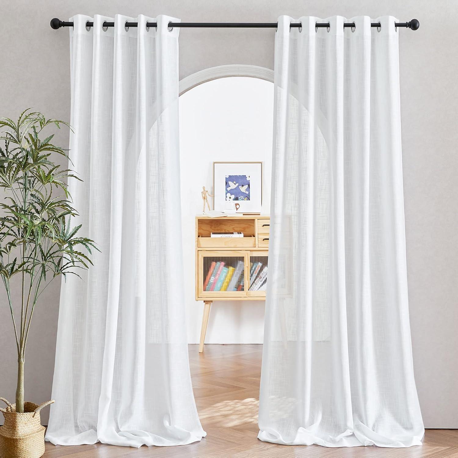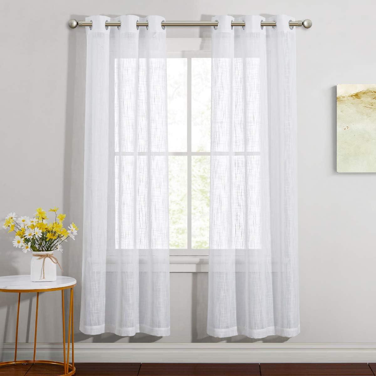 NICETOWN White Sheer Linen Curtains for Windows 84 inch Length, Grommet Top Semi Sheer Vertical Drapes Privacy with Light Filter for Bedroom/Living Room/Sliding Door, 52 inch Wide, 2 PCs(White)