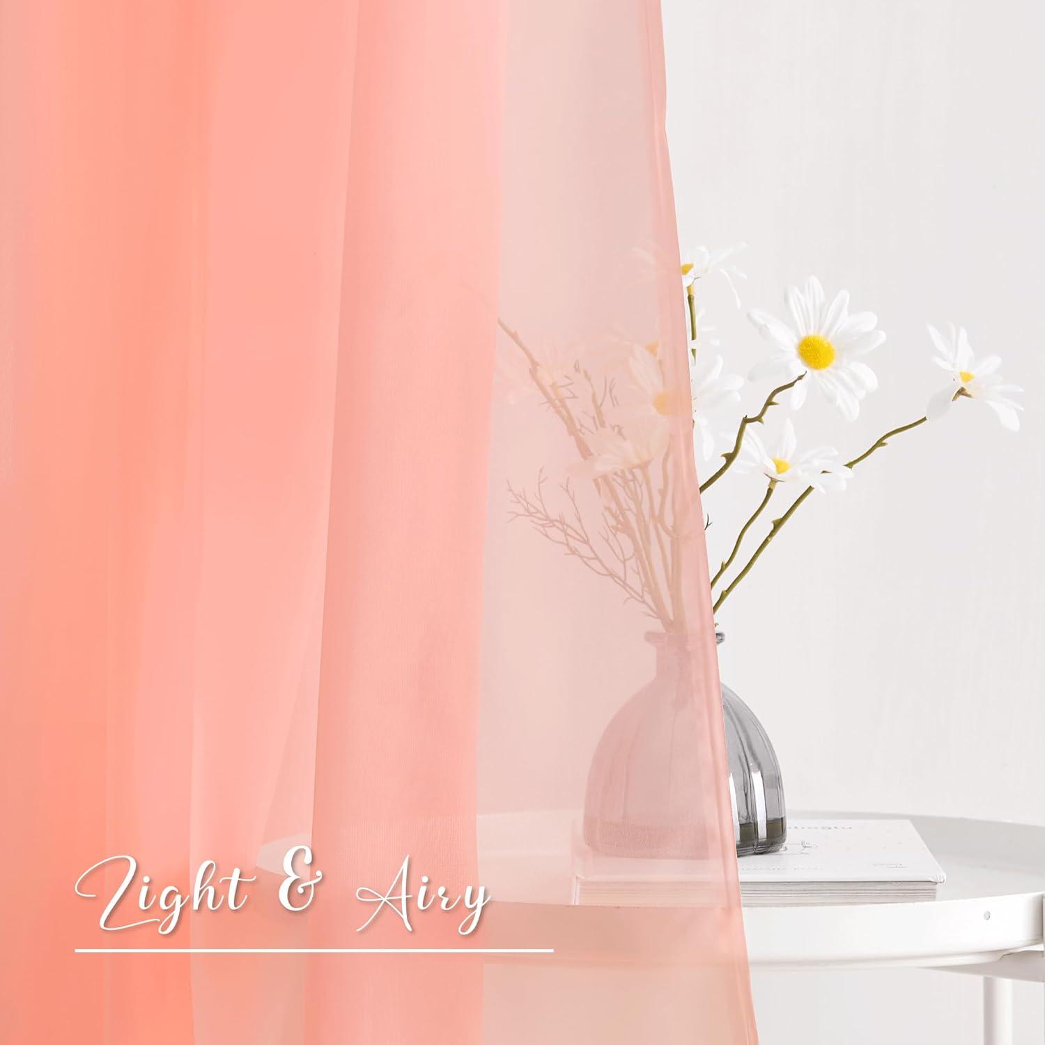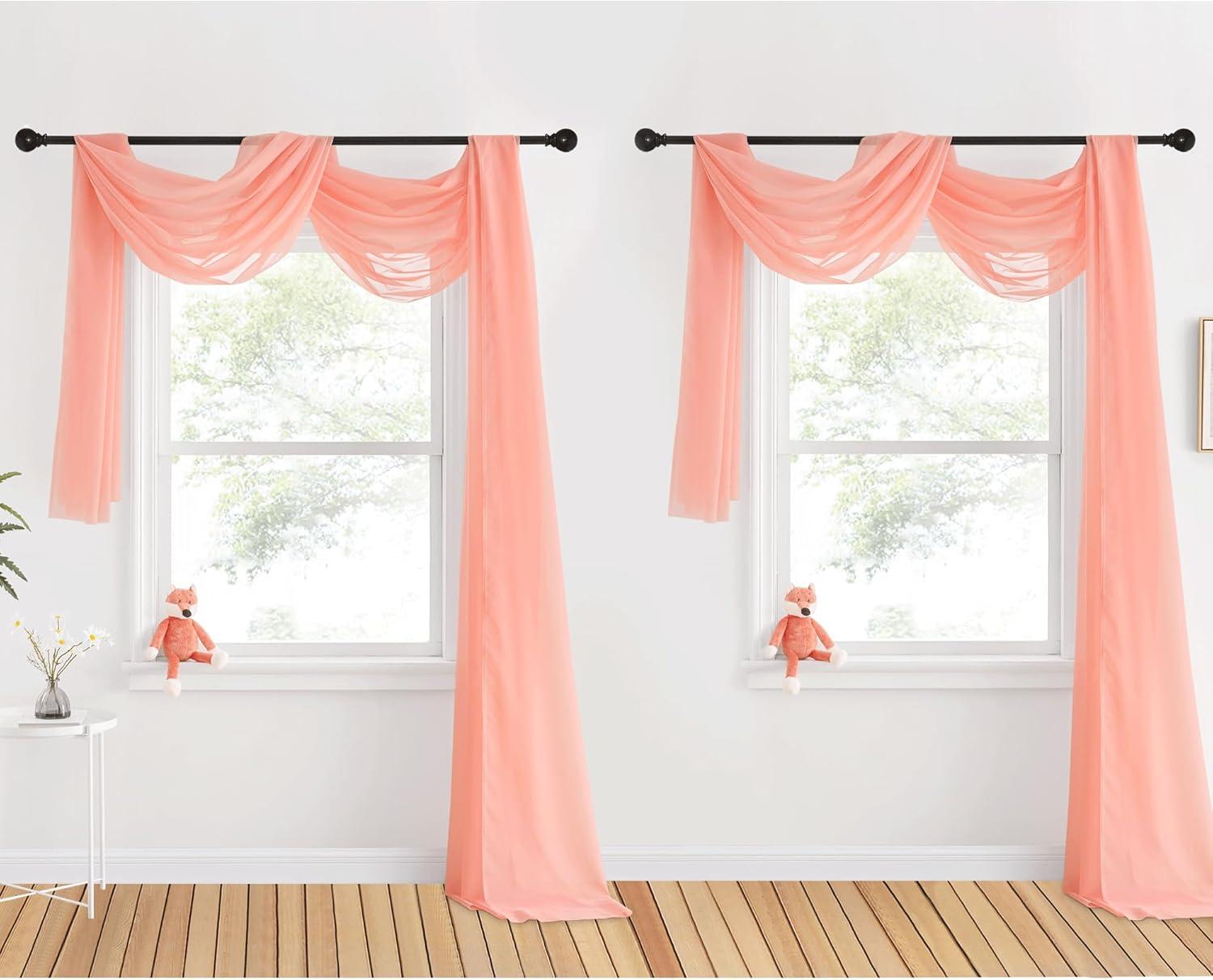 NICETOWN White Sheer Window Scarf 216 inch Extra Long, Soft Voile Textured Bed Canopy Scarf Curtains for Event Designs/Home Decor, 60 inches Wide, Set of 2(Coral)