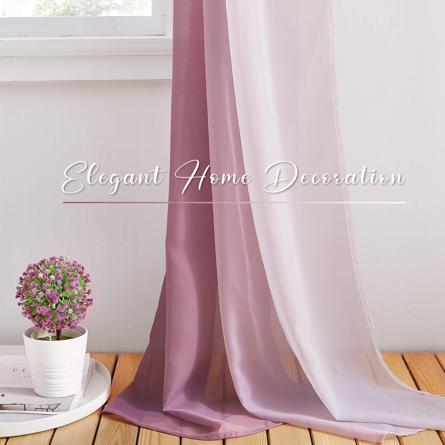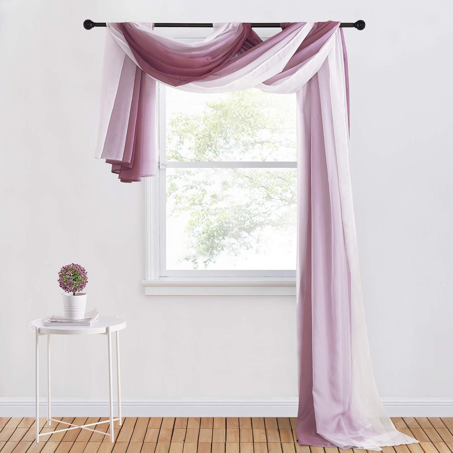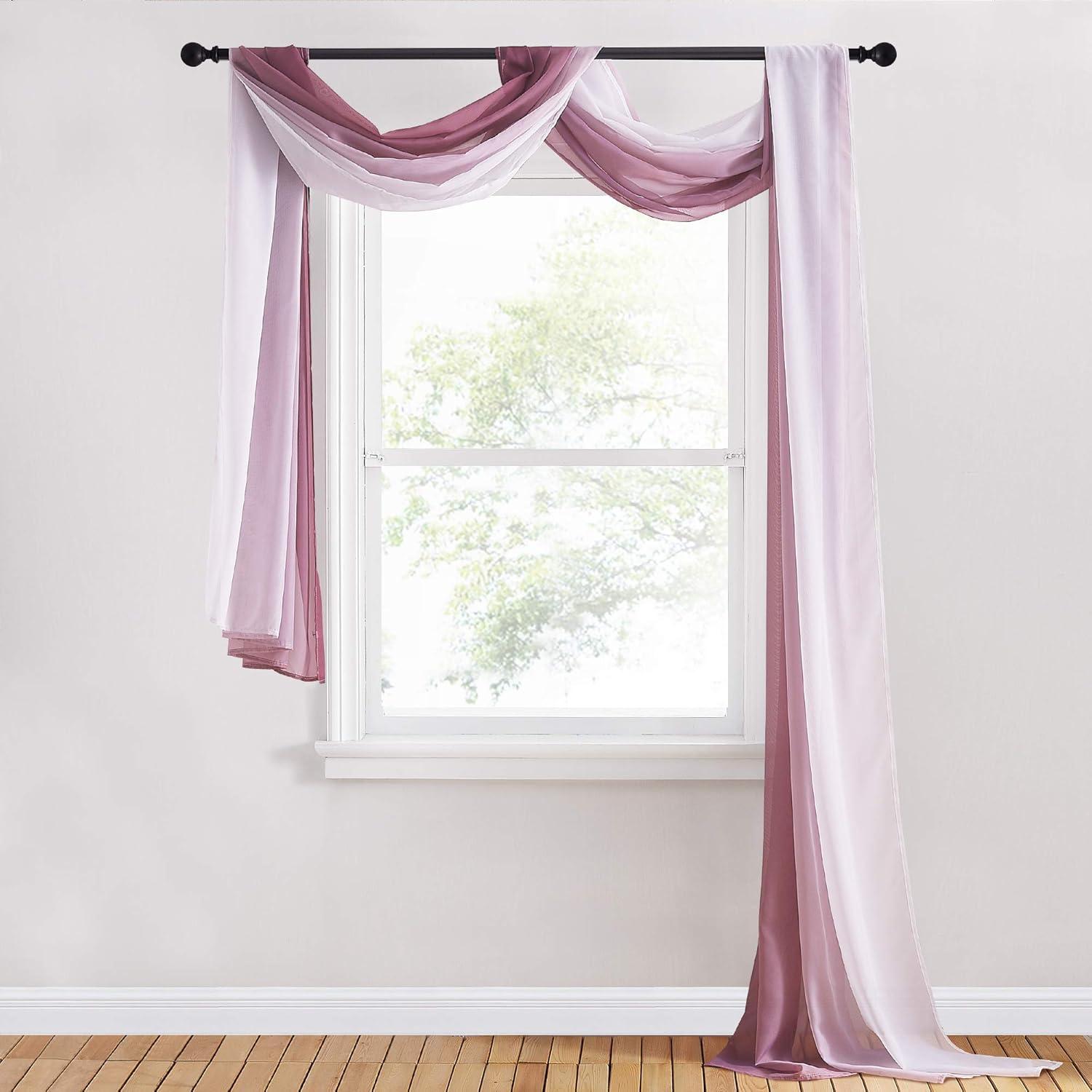 NICETOWN White Sheer Window Scarf 216 inch Extra Long, Soft Voile Textured Bed Canopy Scarf Curtains for Event Designs/Home Decor, 60 inches Wide, Set of 2(Ombre Demure Mauve)