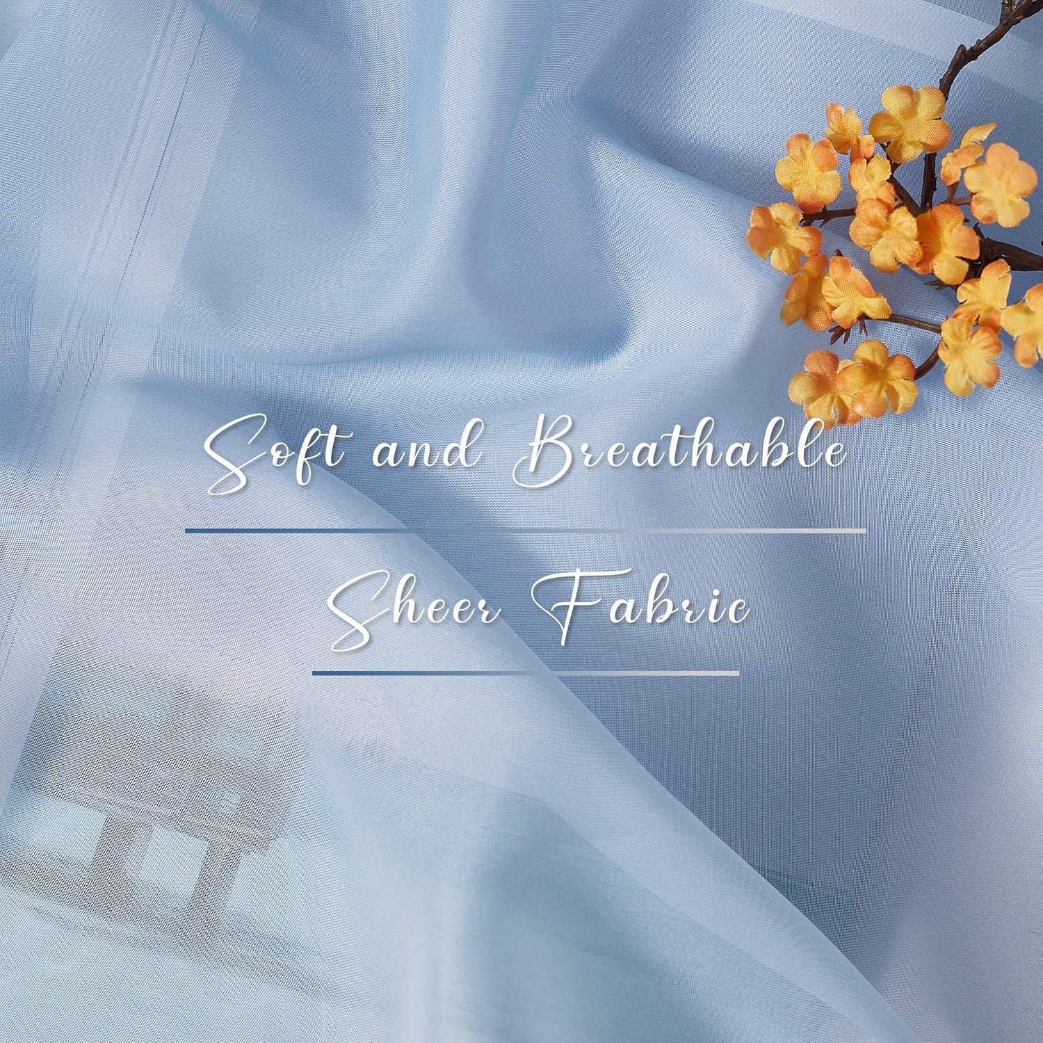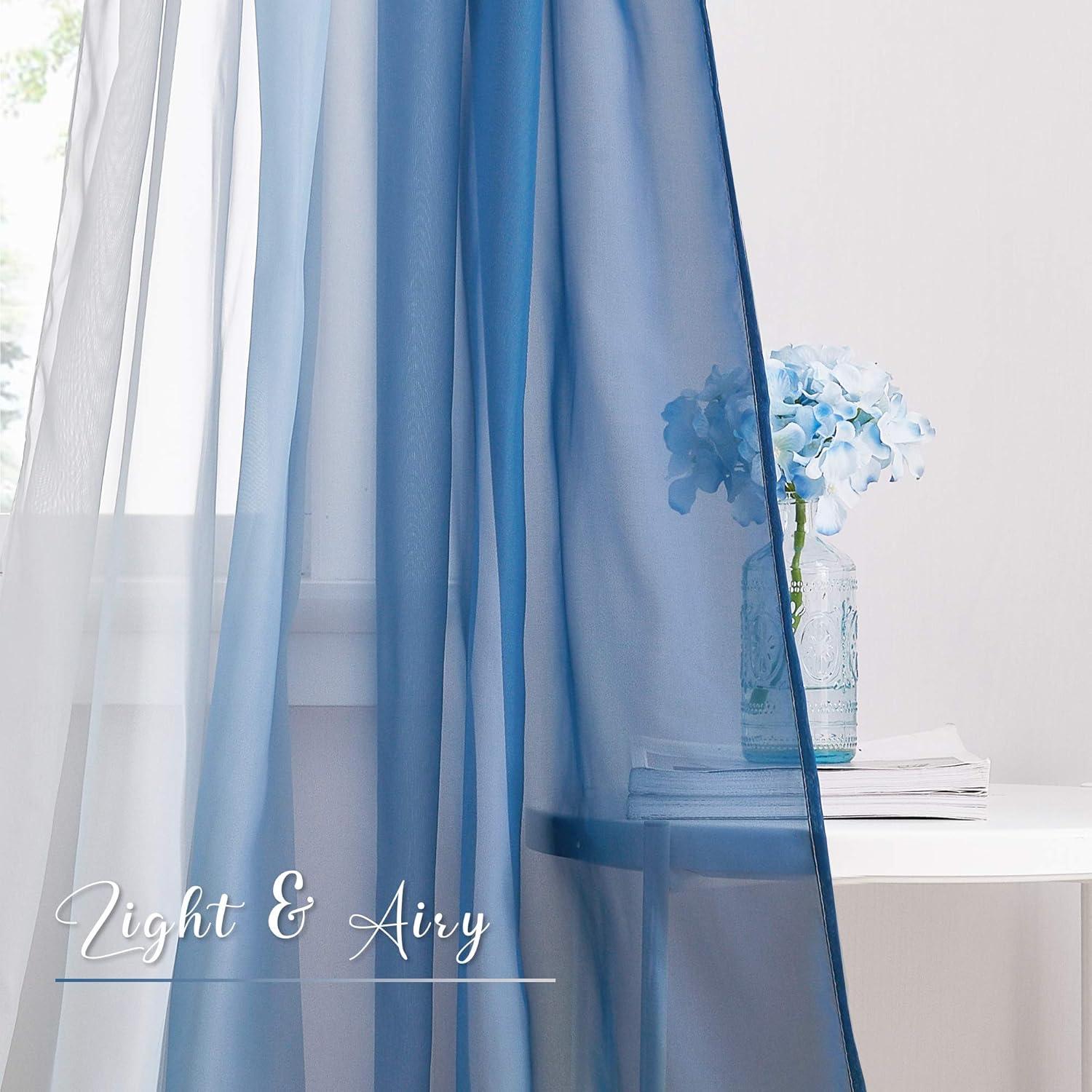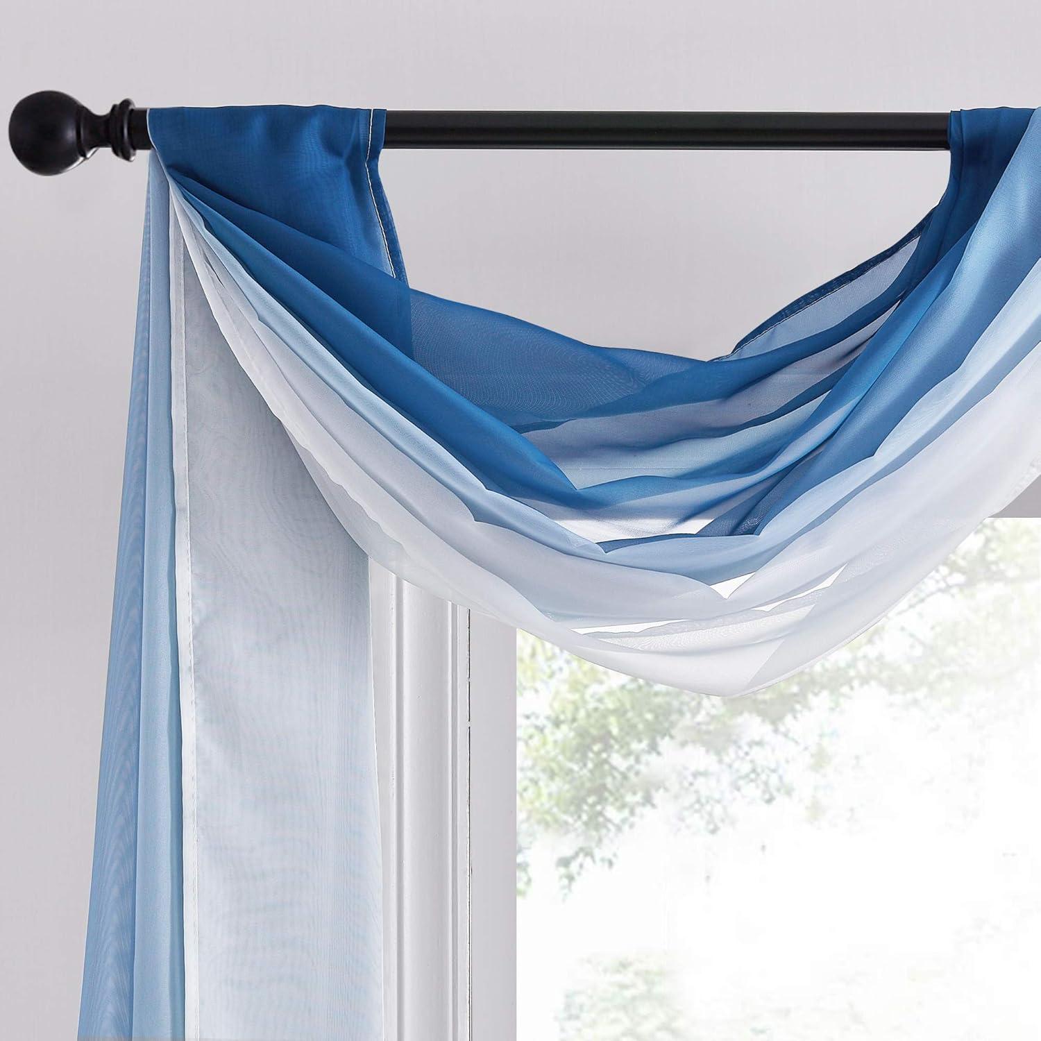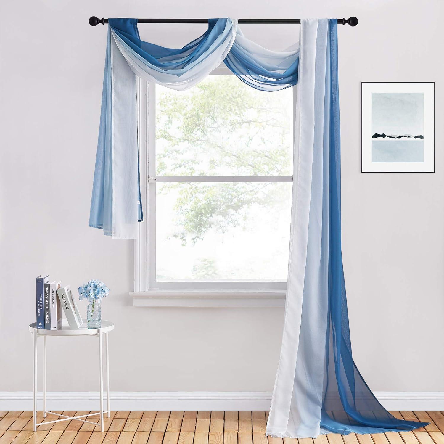 NICETOWN White Sheer Window Scarf 216 inch Extra Long, Soft Voile Textured Bed Canopy Scarf Curtains for Event Designs/Home Decor, 60 inches Wide, Set of 2(Ombre Navy Blue)