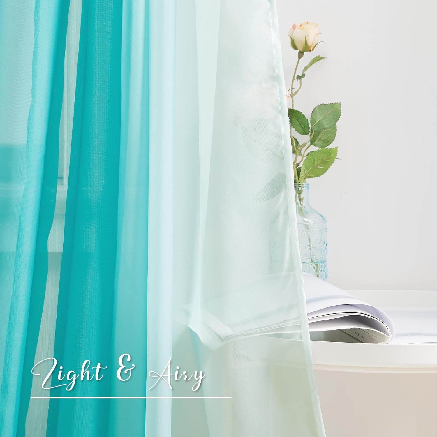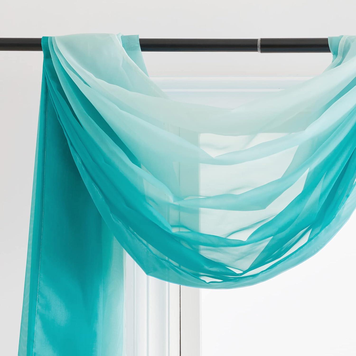 NICETOWN White Sheer Window Scarf 216 inch Extra Long, Soft Voile Textured Bed Canopy Scarf Curtains for Event Designs/Home Decor, 60 inches Wide, Set of 2(Ombre Teal)