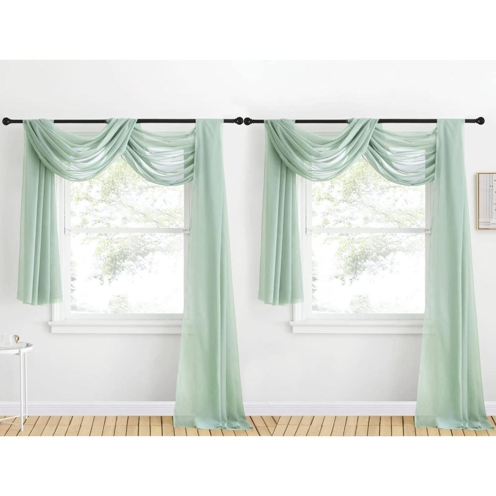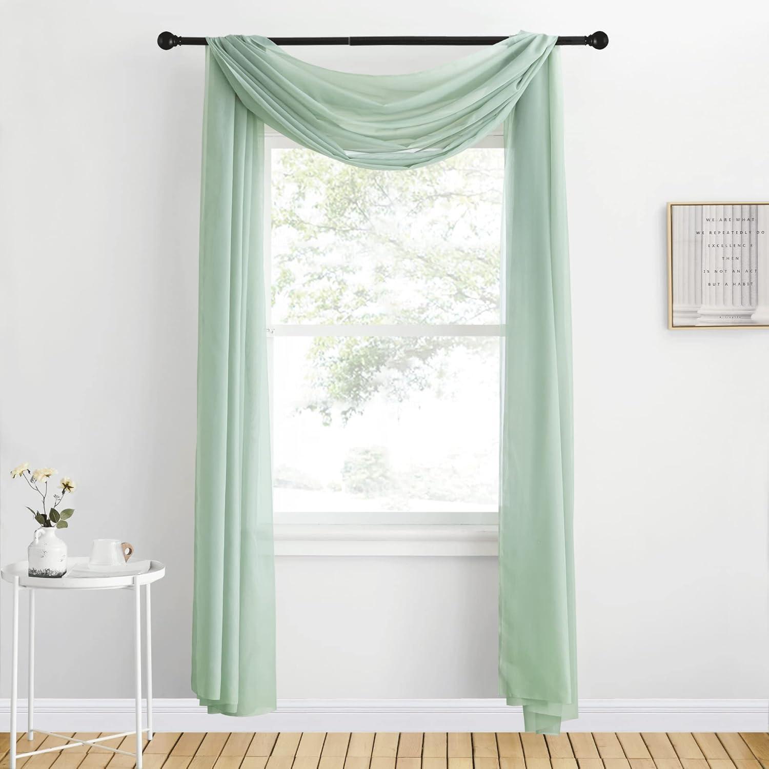 imageNICETOWN White Sheer Window Scarf 216 inch Extra Long Soft Voile Textured Bed Canopy Scarf Curtains for Event DesignsHome Decor 60 inches Wide Set of 2Sage Green