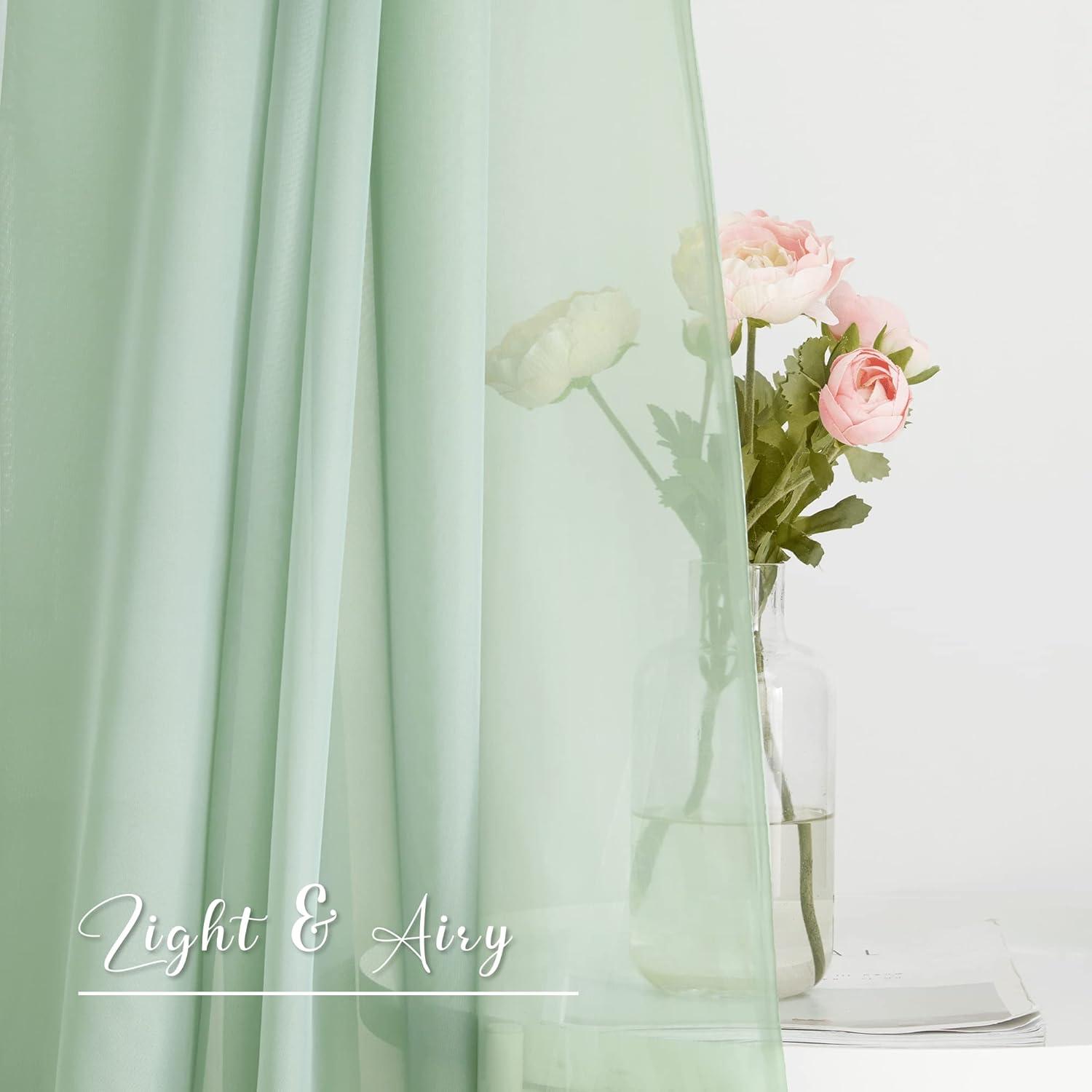 imageNICETOWN White Sheer Window Scarf 216 inch Extra Long Soft Voile Textured Bed Canopy Scarf Curtains for Event DesignsHome Decor 60 inches Wide Set of 2Sante Green