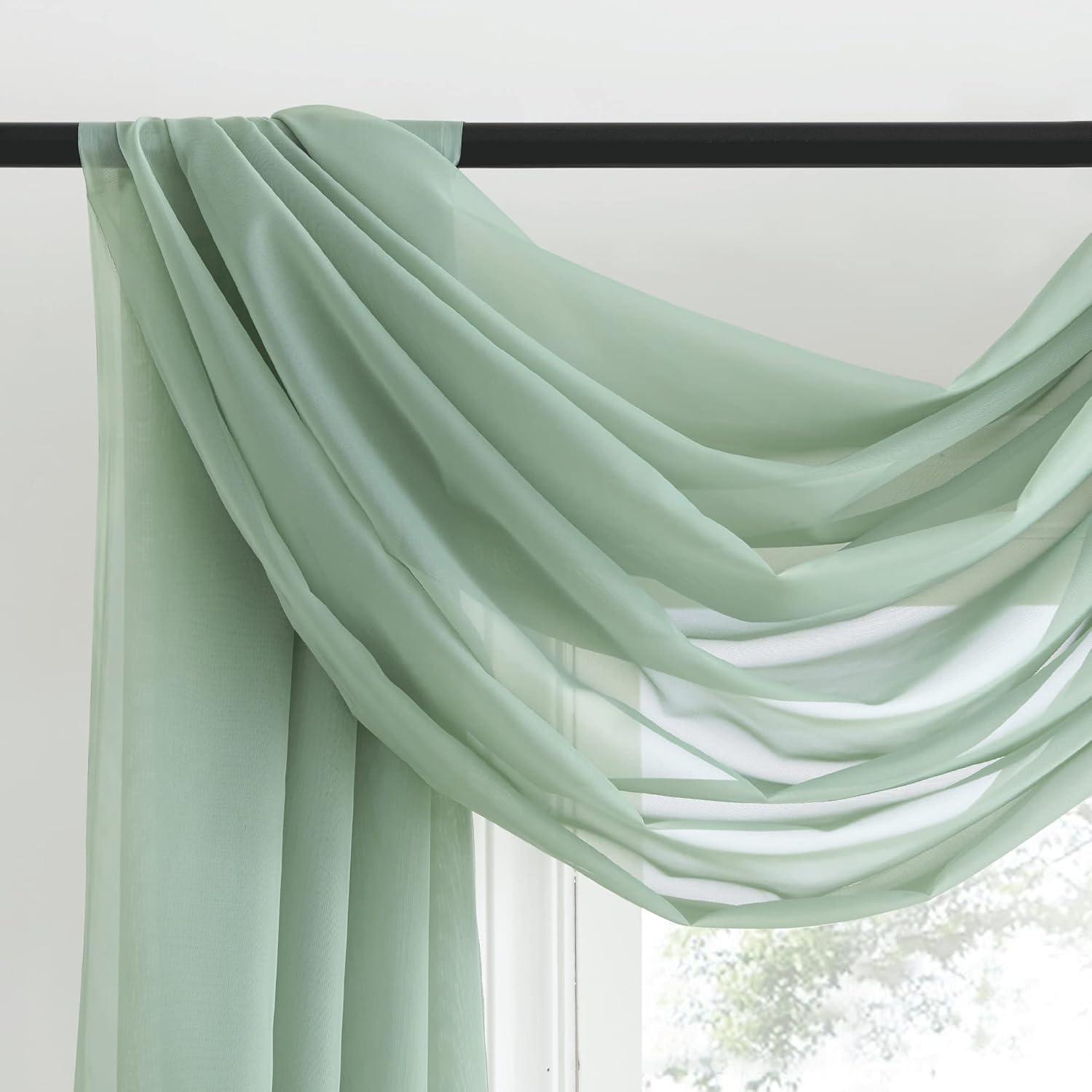 NICETOWN White Sheer Window Scarf 216 inch Extra Long, Soft Voile Textured Bed Canopy Scarf Curtains for Event Designs/Home Decor, 60 inches Wide, Set of 2(Sage Green)