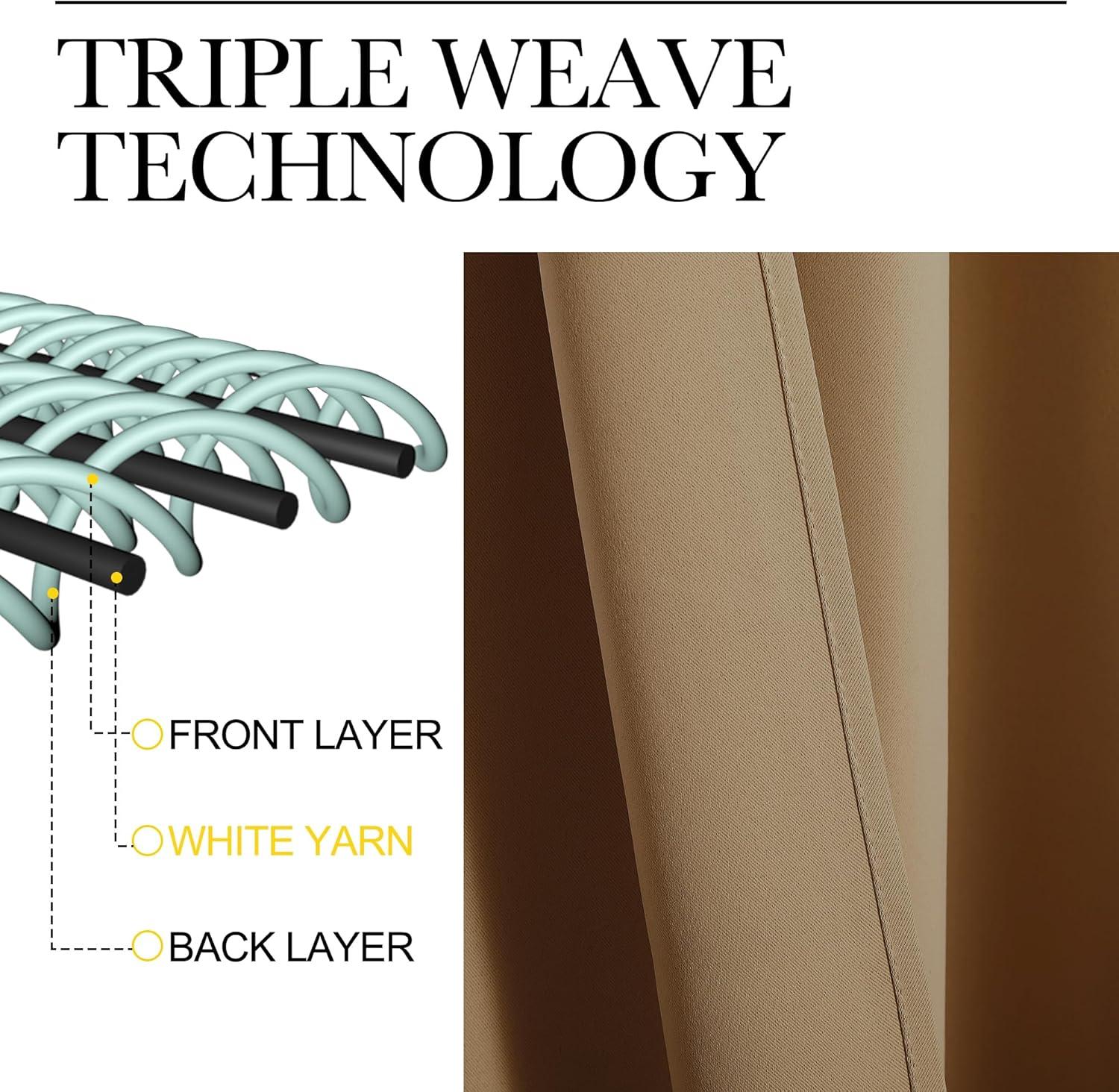 AMAZING MATERIAL: This unique, soft and heavy-duty blackout fabric is woven with three-layer construction. The middle layer of black yarns creates a curtain panel that is excellent for blocking out 85%-99% of light (Dark color works better on blocking light) while providing privacy.