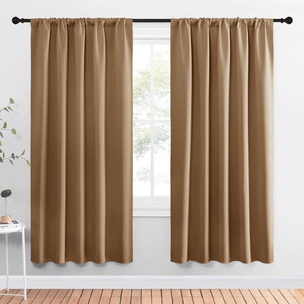 NICETOWN Window Curtains Blackout Drapes, Gold Brown, 1 Pair, 52 by 72-Inch, Thermal Insulated Solid Rod Pocket Blackout Curtains/Draperies for Living Room