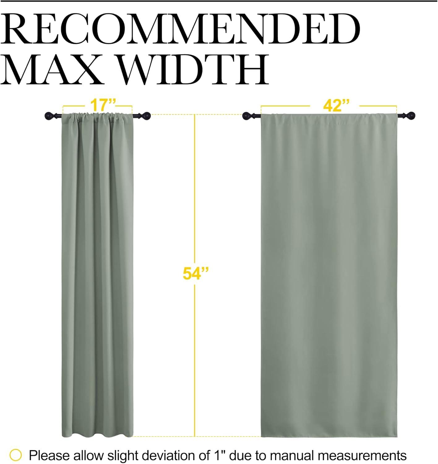 ELEGANT DESIGN: 2 panels per package. Each Blackout Curtain Panel measures 42 inches wide x 54 inches long. The NICETOWN drapery is constructed with rod pocket, fitting the curtain rod of your choice up to 2 inches in diameter, making the curtains easy to install and slide.