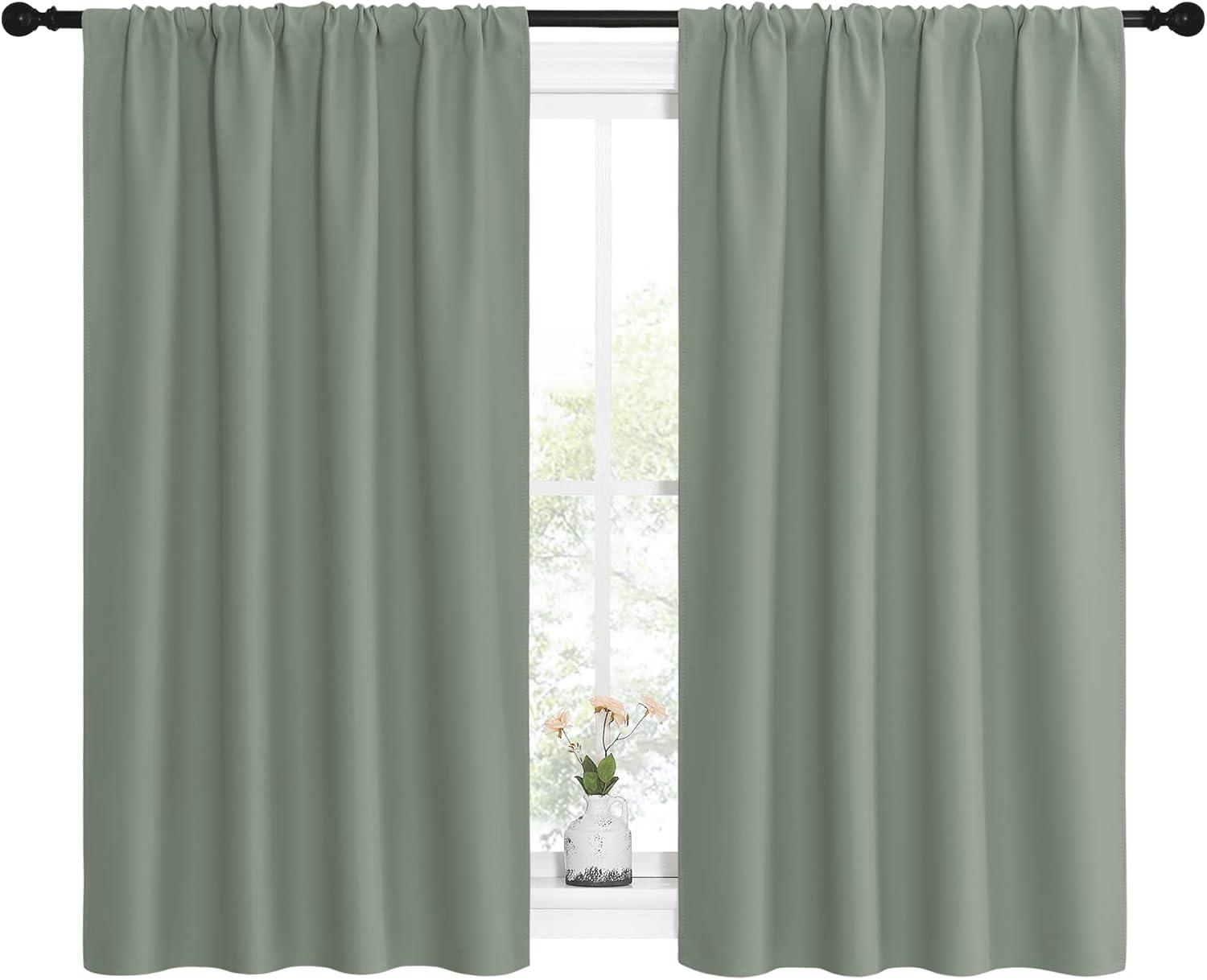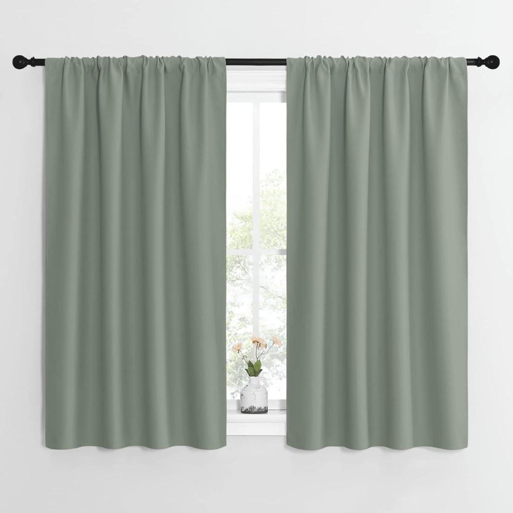 NICETOWN Window Curtains Blackout Drapes – Thermal Insulated Solid Rod Pocket Blackout Curtains/Draperies for Living Room (Greyish Green, One Pair, 52 by 63-Inch)